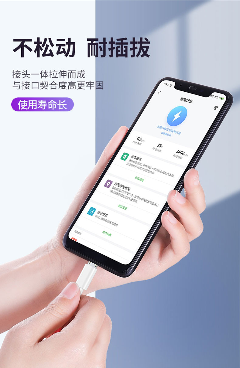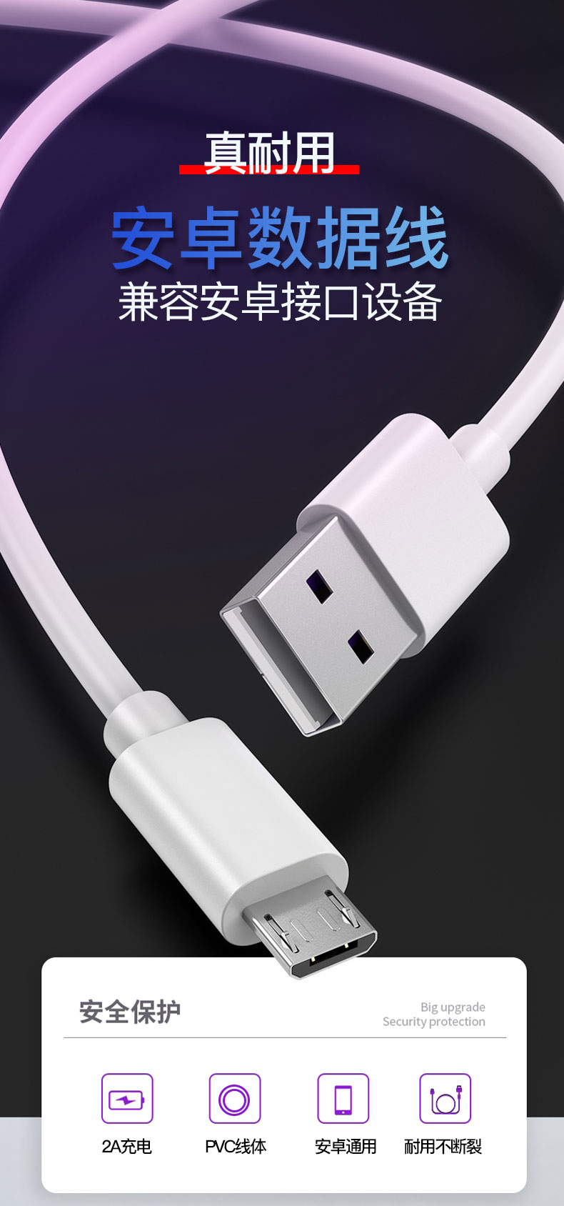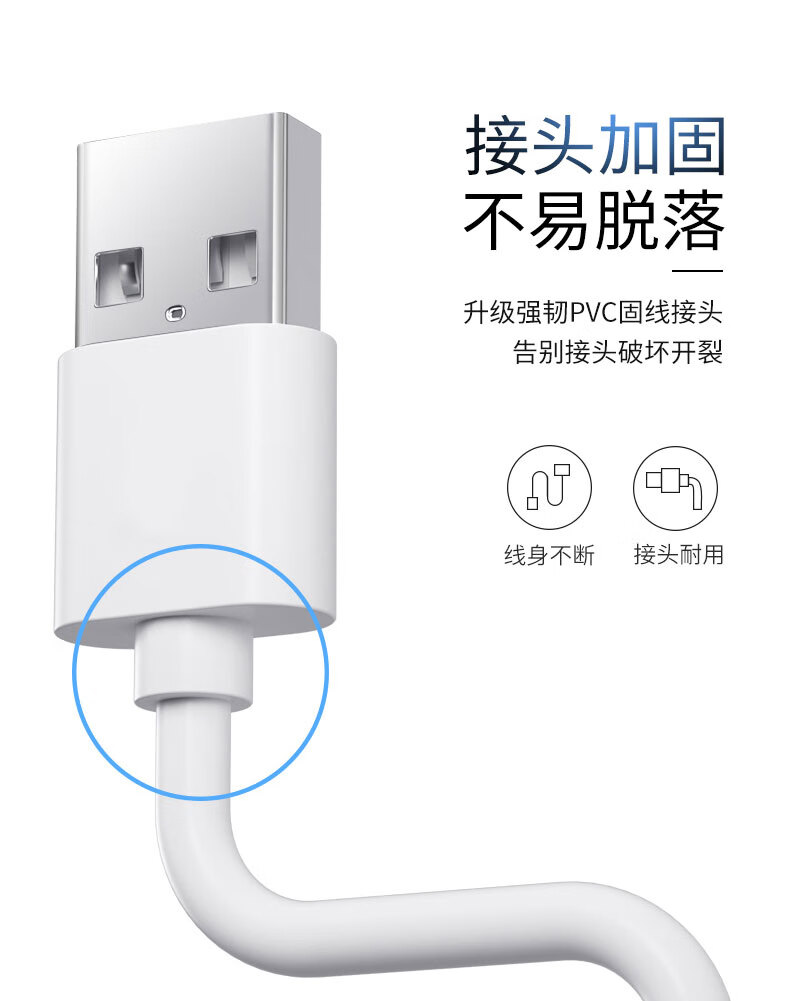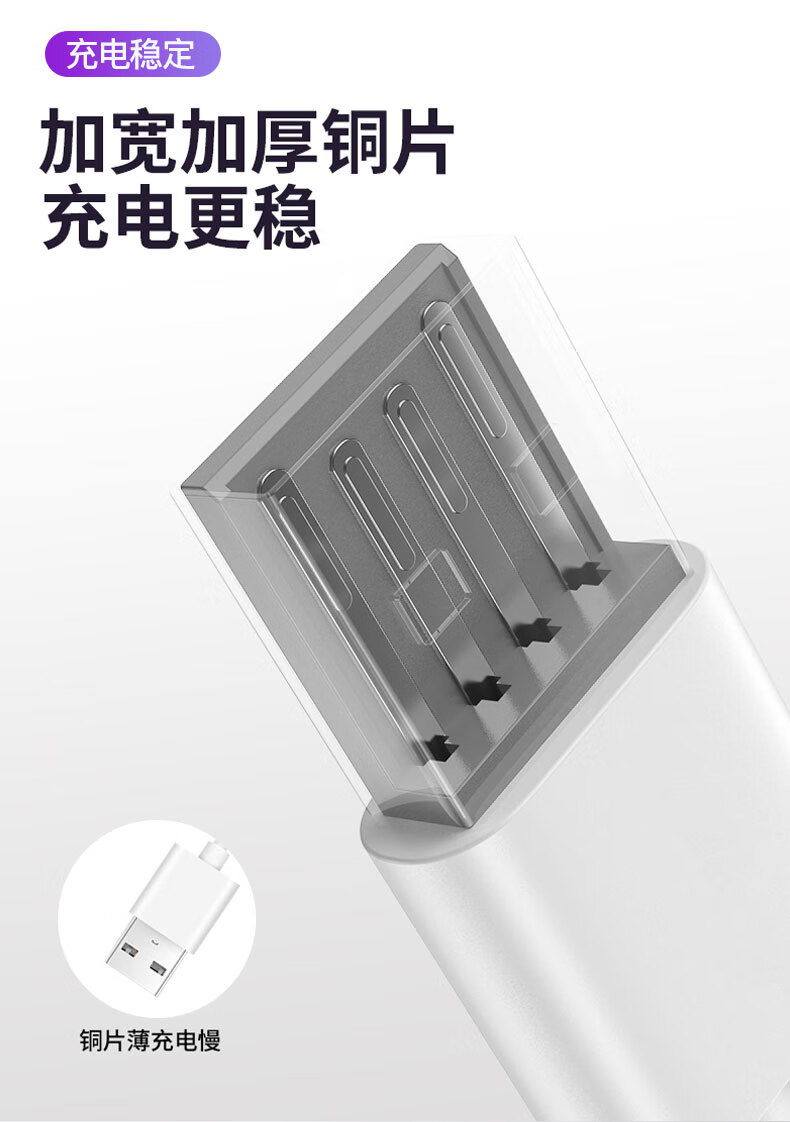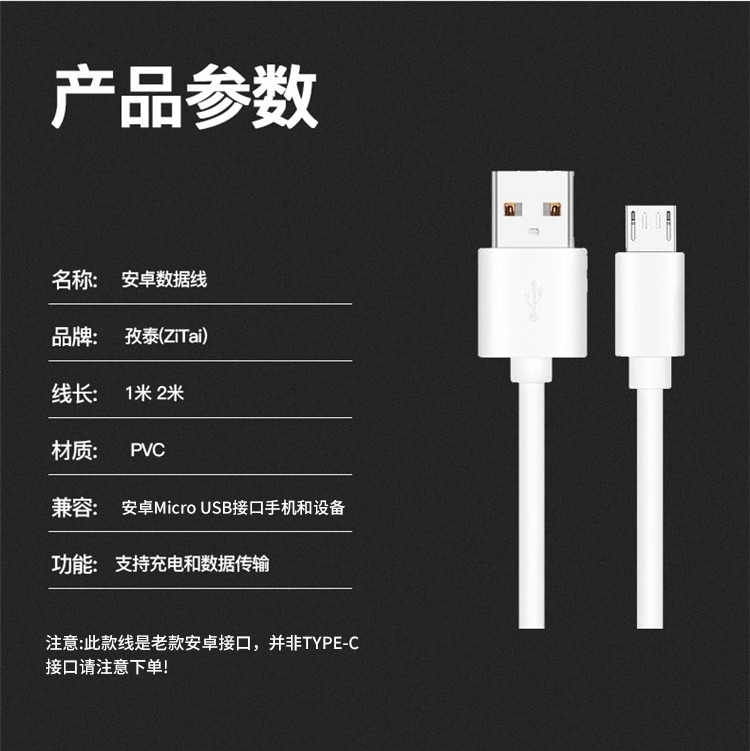 孜泰 【2条装】安卓数据线Micro USB接口手机充电器线 1米 白色 (非Type-C接口)