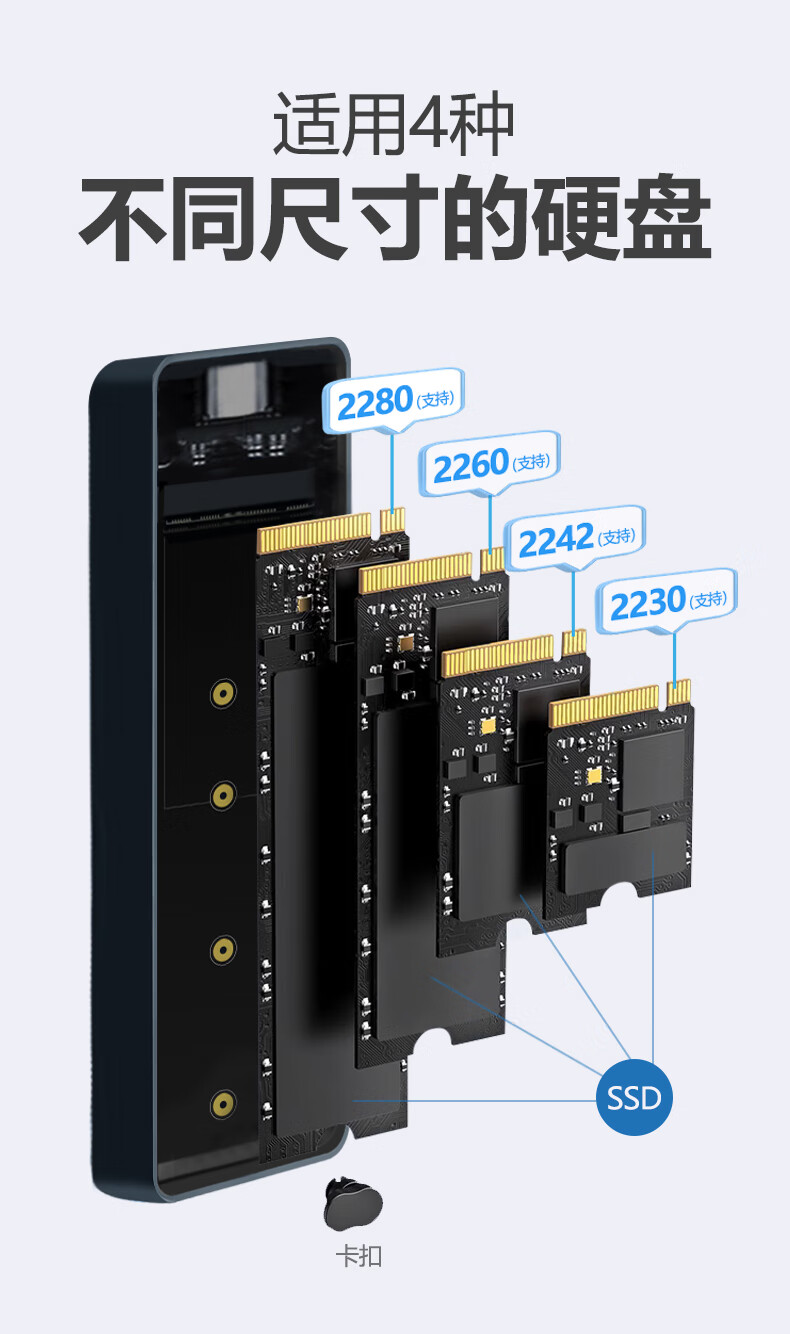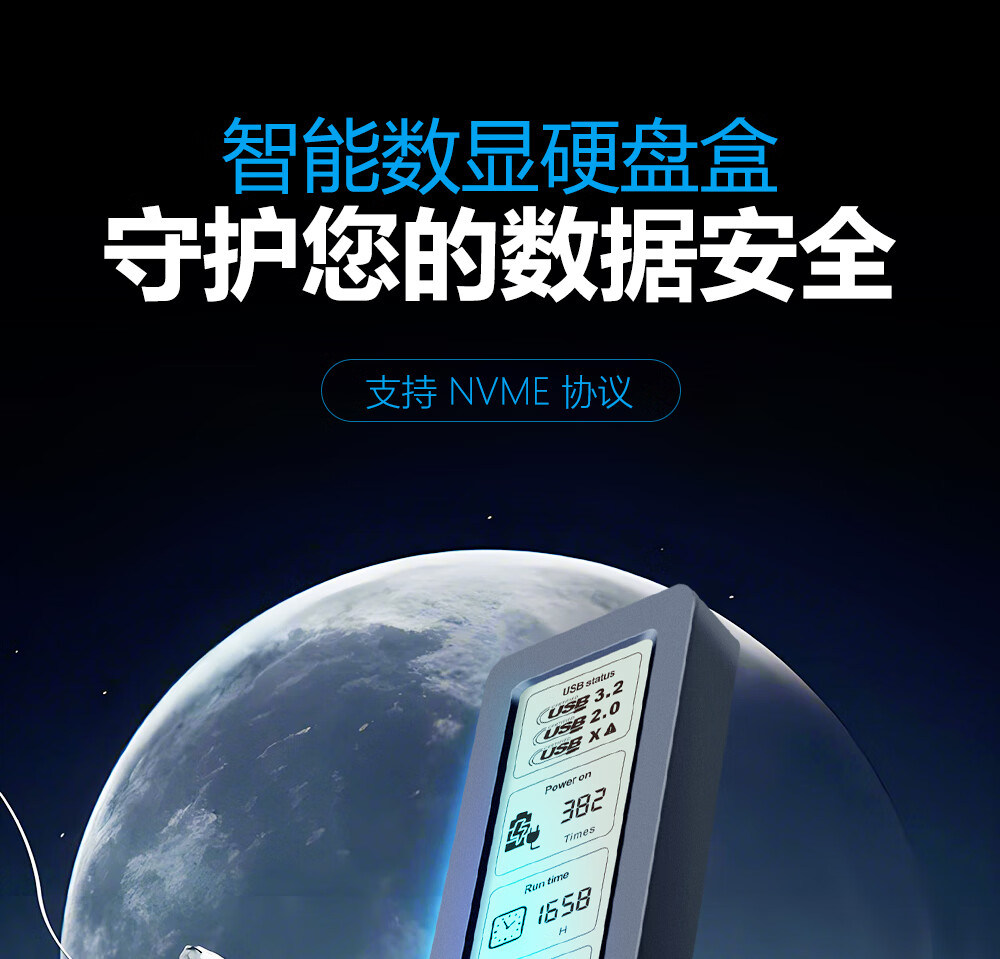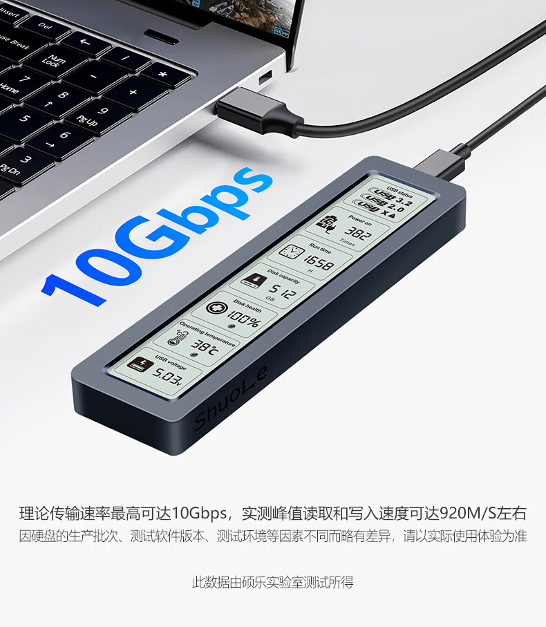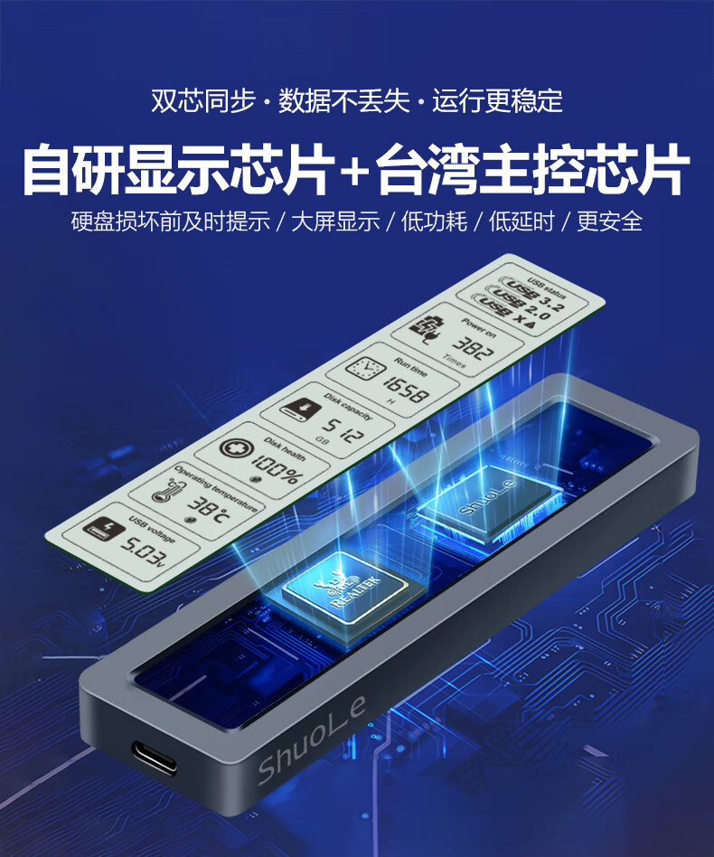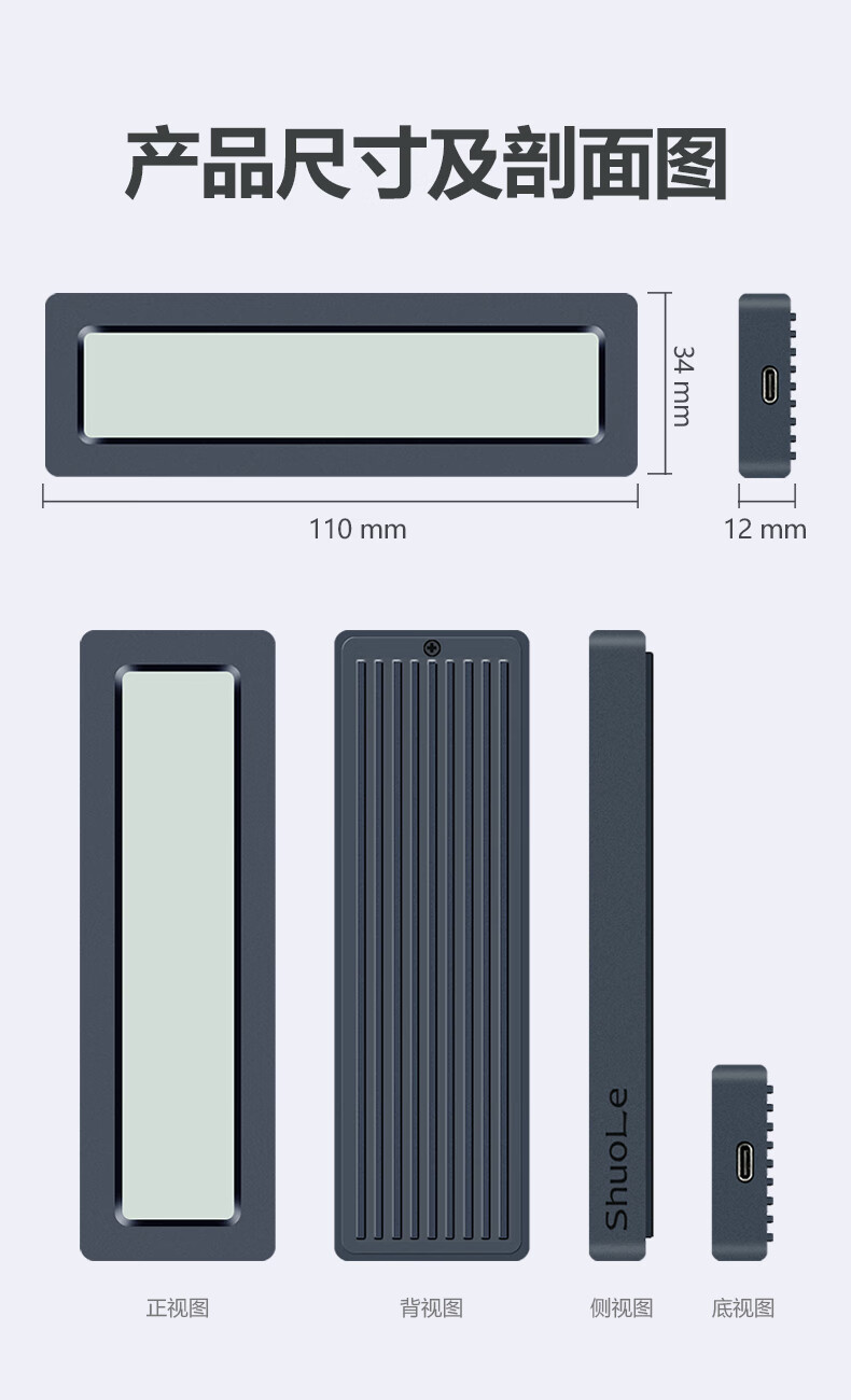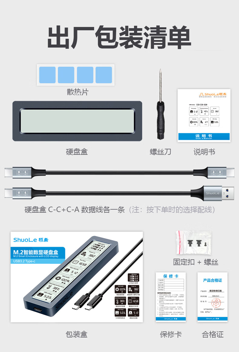硕乐智能数显m.2固态SSD硬盘盒m2笔记本NVME协议SATA转接 双协议10Gbps+双数据线