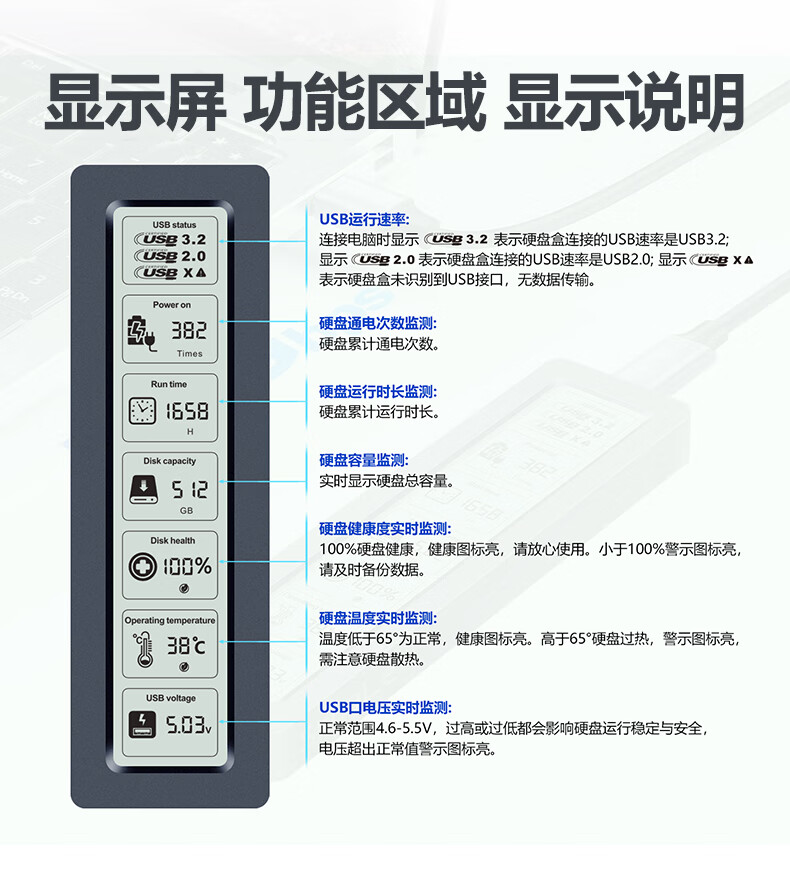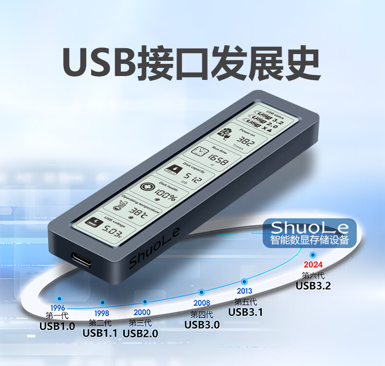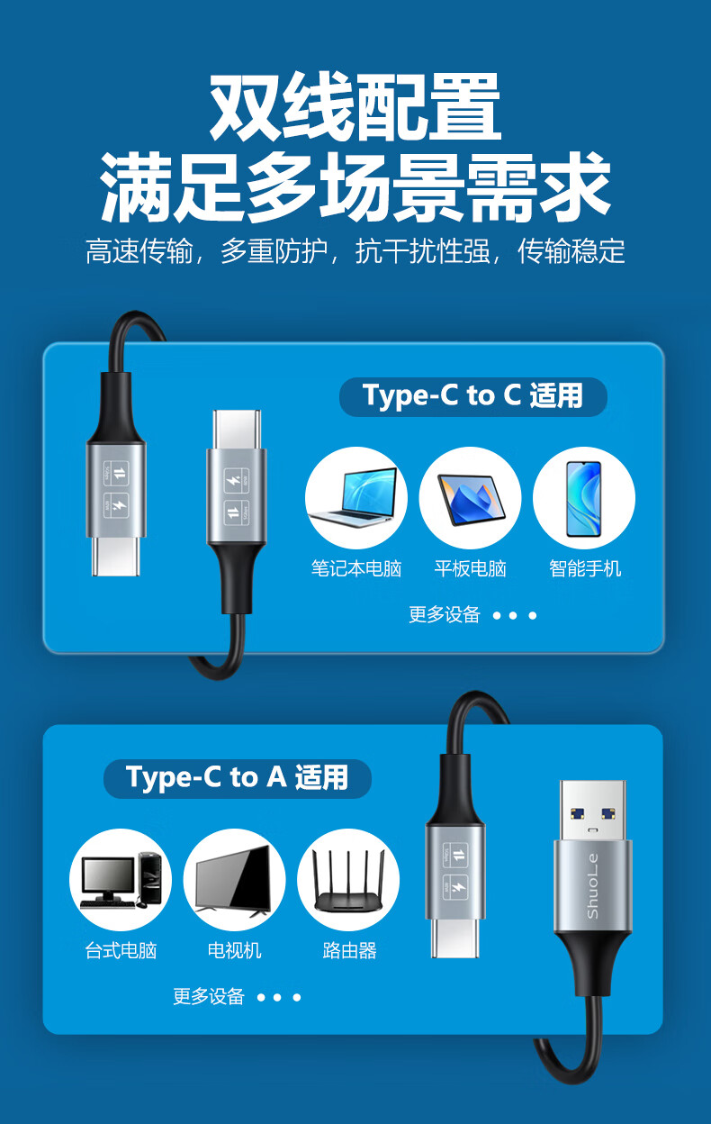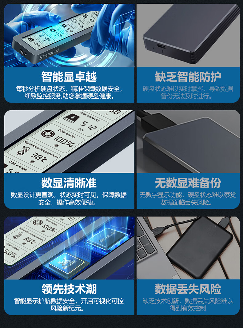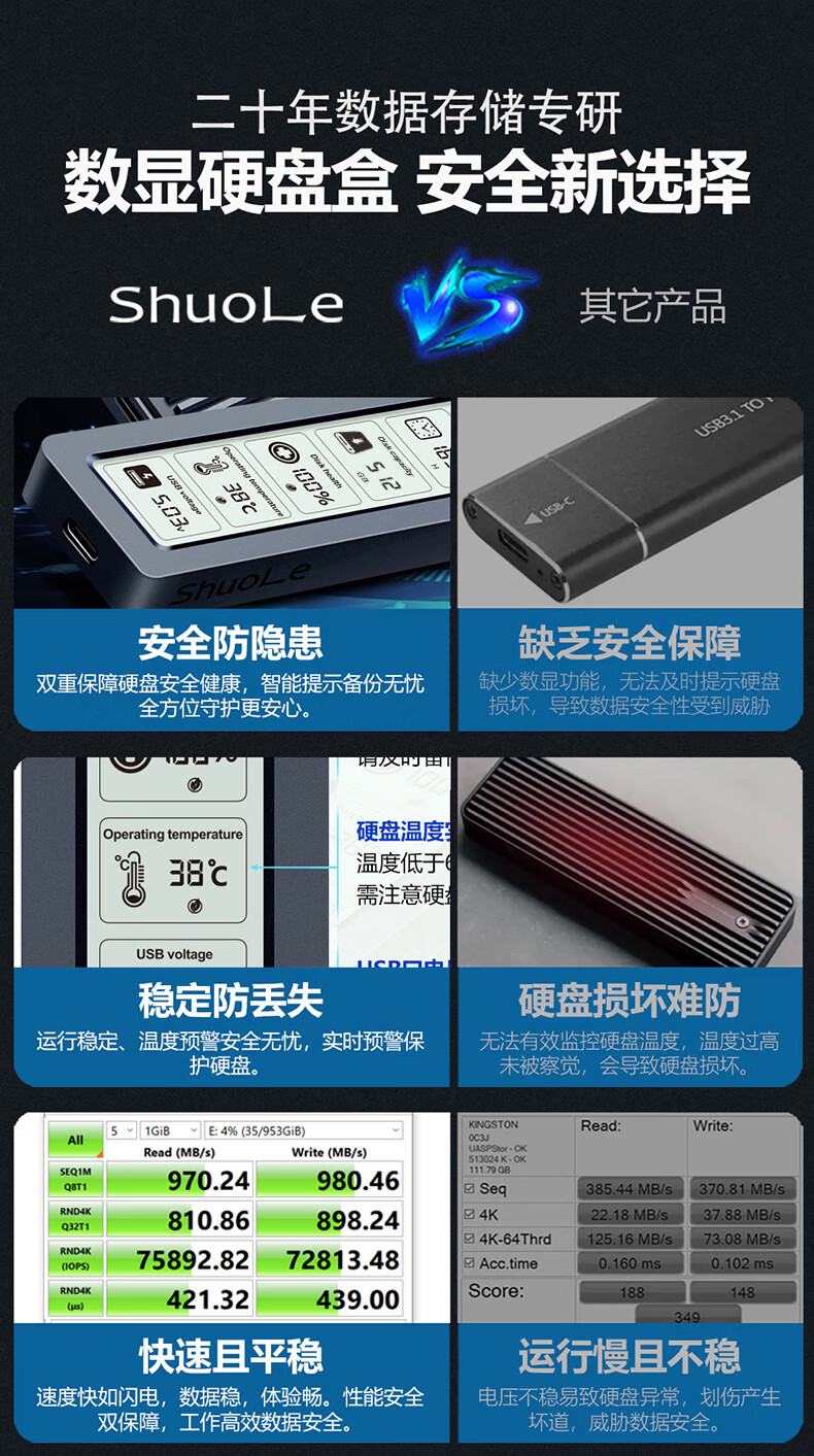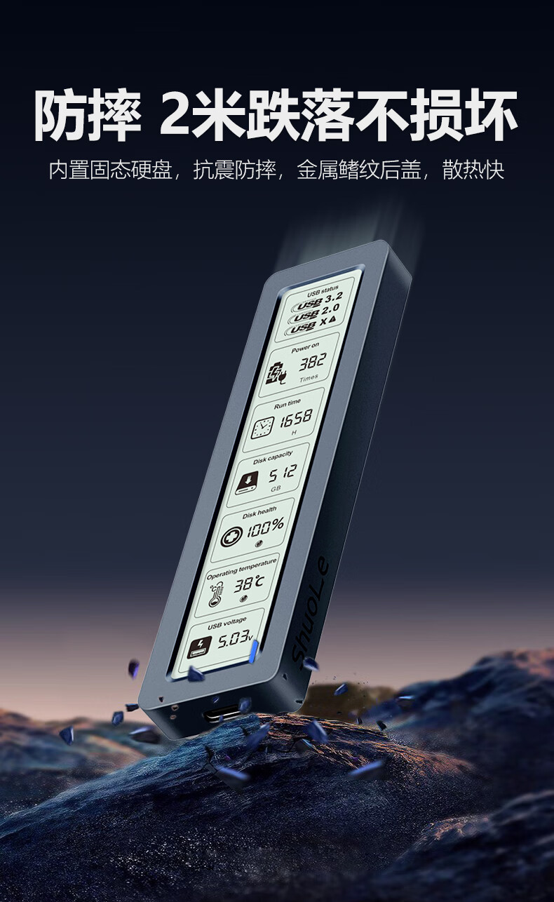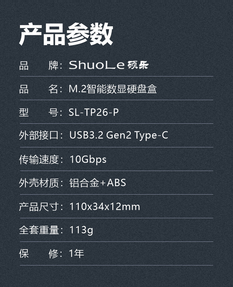 硕乐智能数显m.2固态SSD硬盘盒m2笔记本NVME协议SATA转接 双协议10Gbps+双数据线