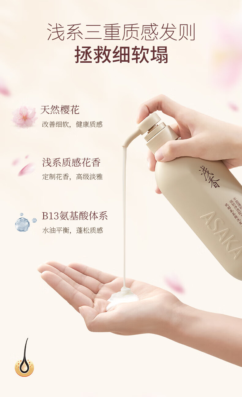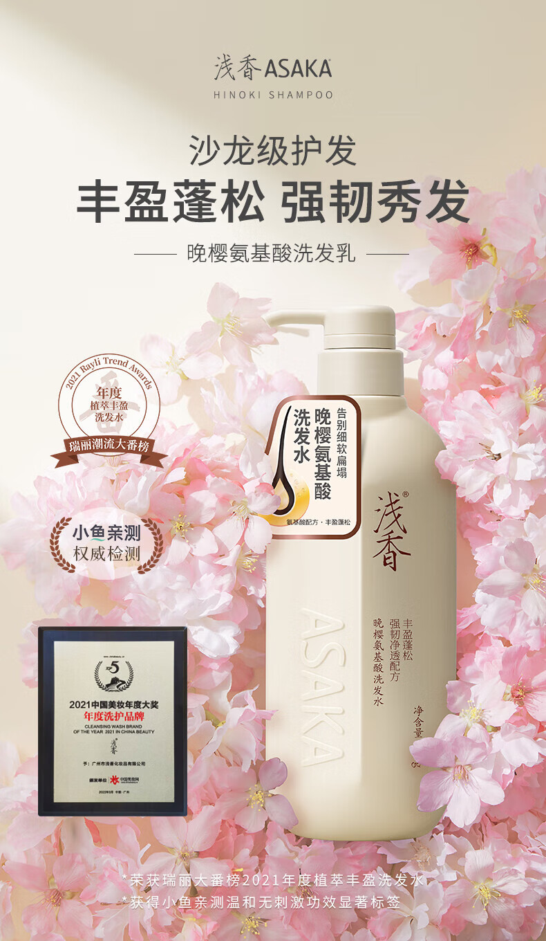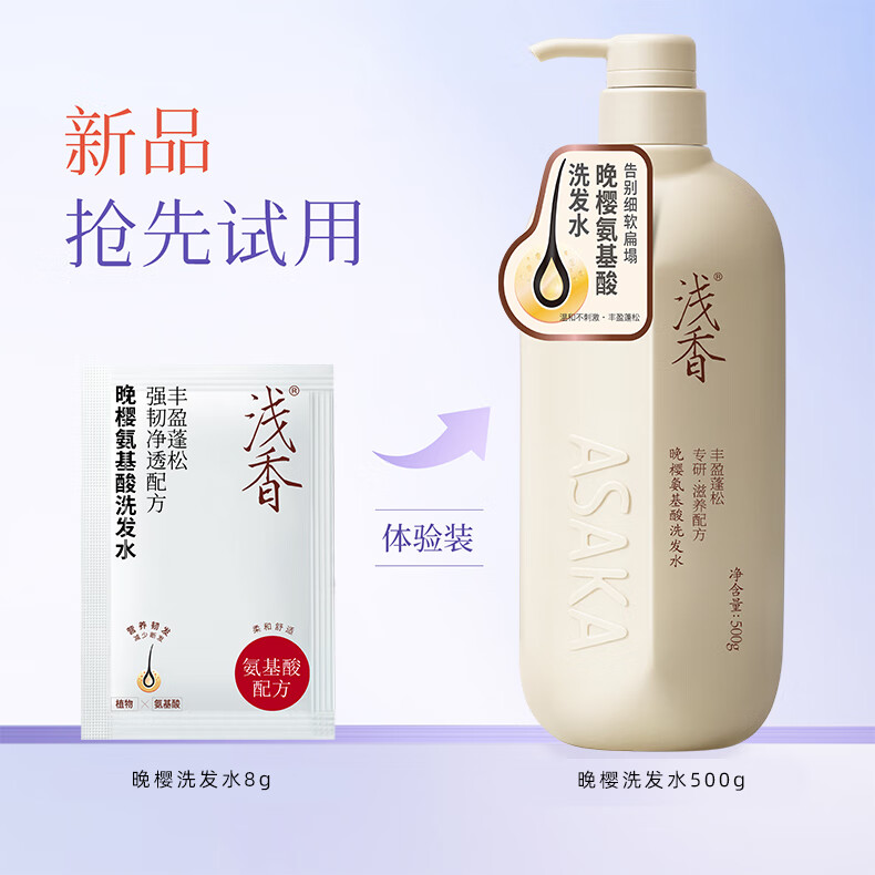 浅香(ASAKA)洗发水露丰盈蓬松持久留香男女士控油去屑氨基酸洗头膏晚樱洗发8g