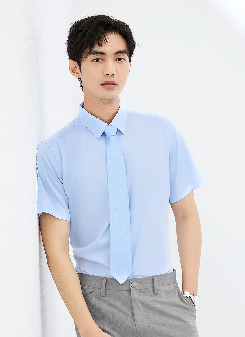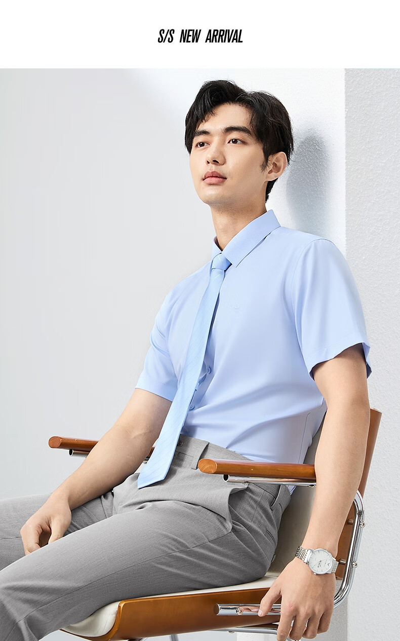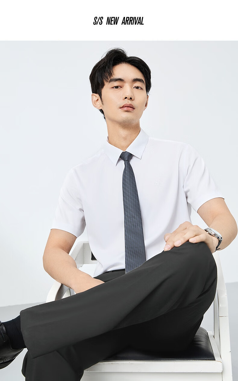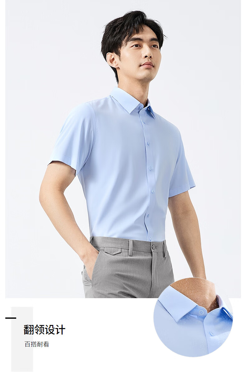 柒牌【三防】易打理短袖衬衫男2025夏季商务正装翻领衬衣