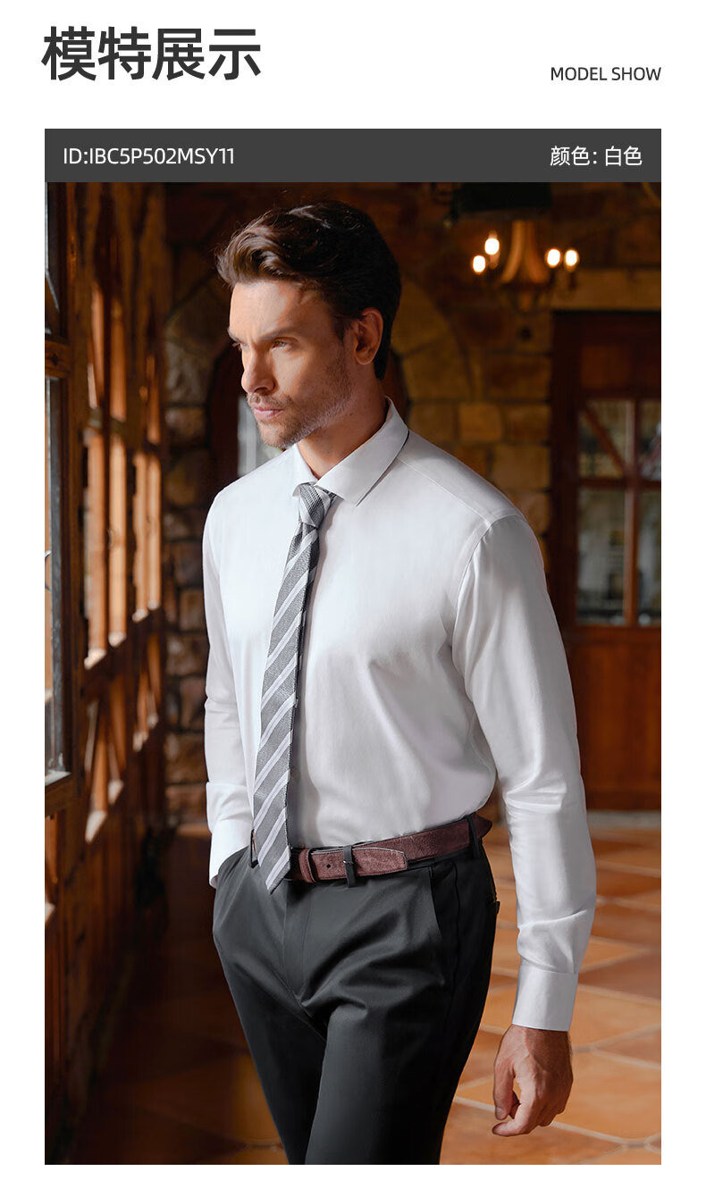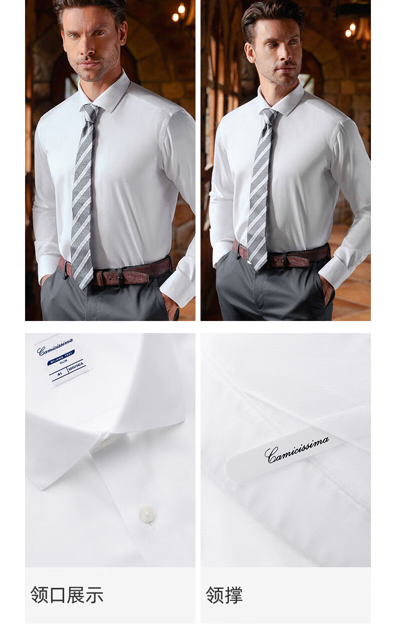 恺米切【明星同款】意大利男士长袖衬衫四季免烫多色商务正装高级感 白色主推(修身)IBC5P502MSY11 41