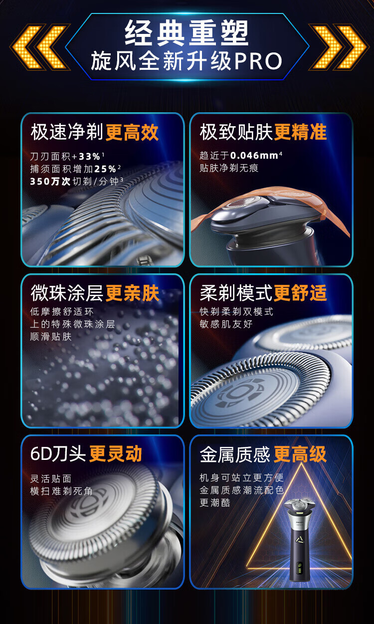 飞利浦(PHILIPS)电动剃须刀旋风3系PRO刮胡刀 风驰切剃6D浮动刀头 送老公送男友 父亲生日礼物 国家补贴