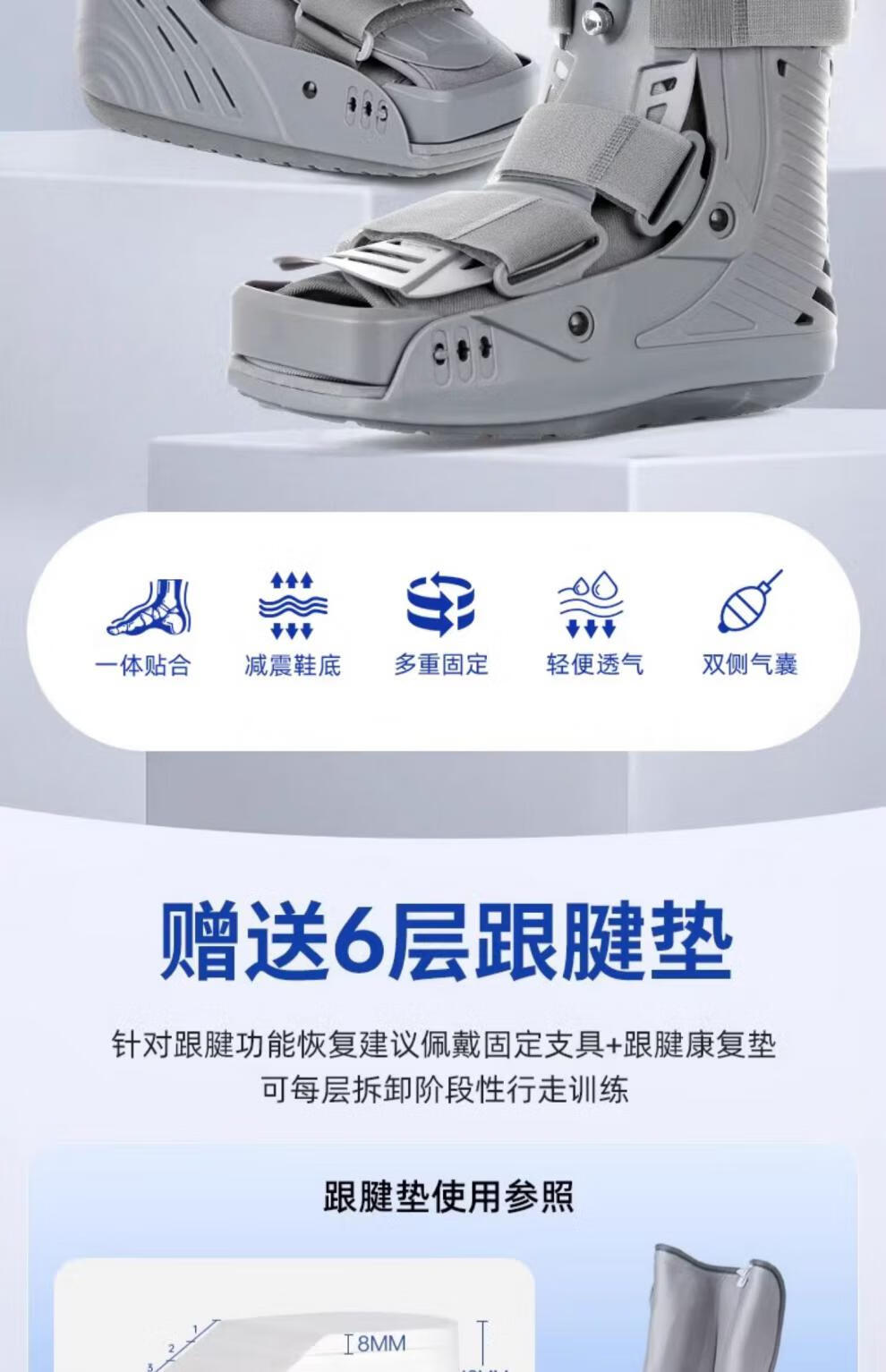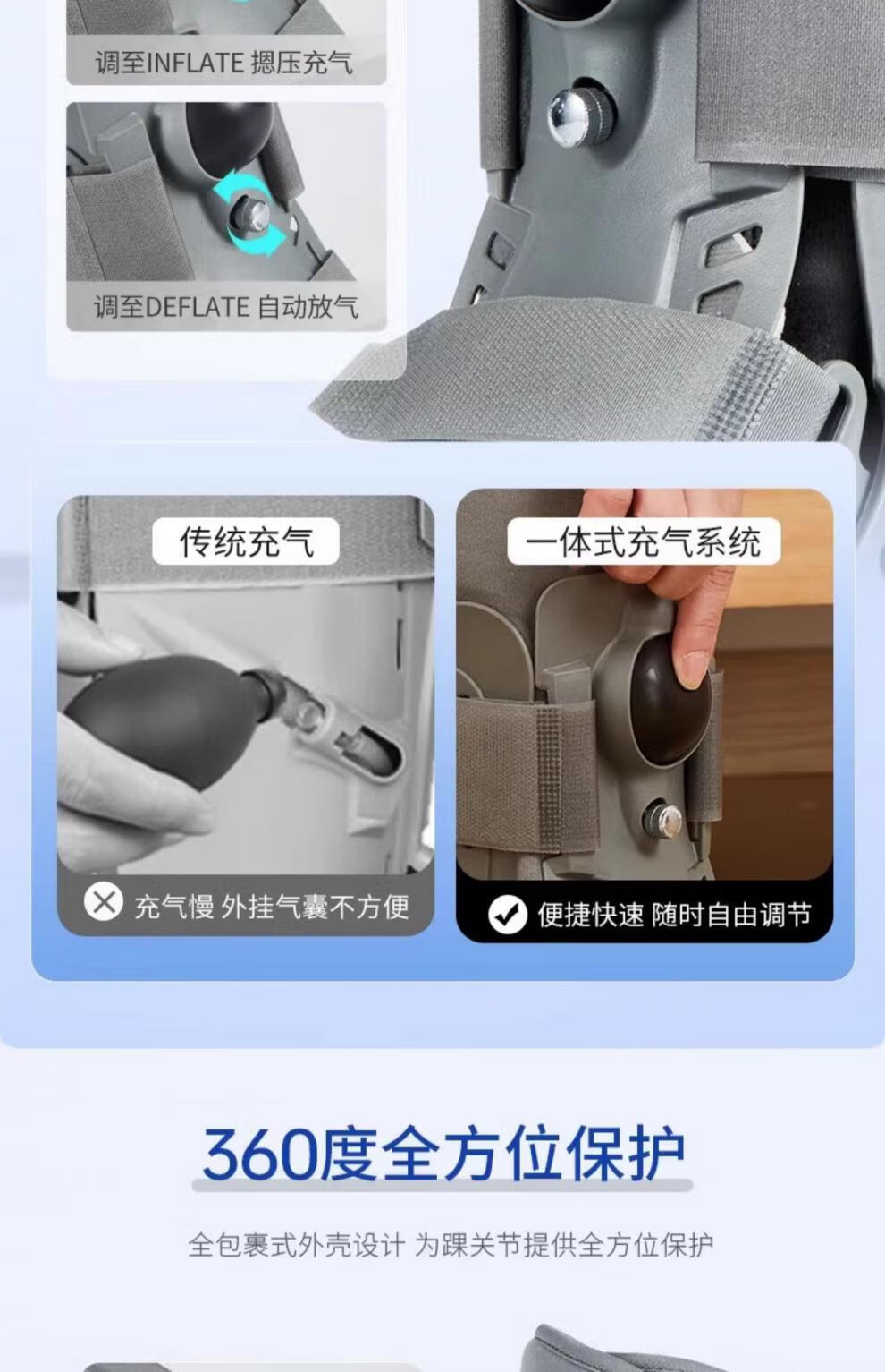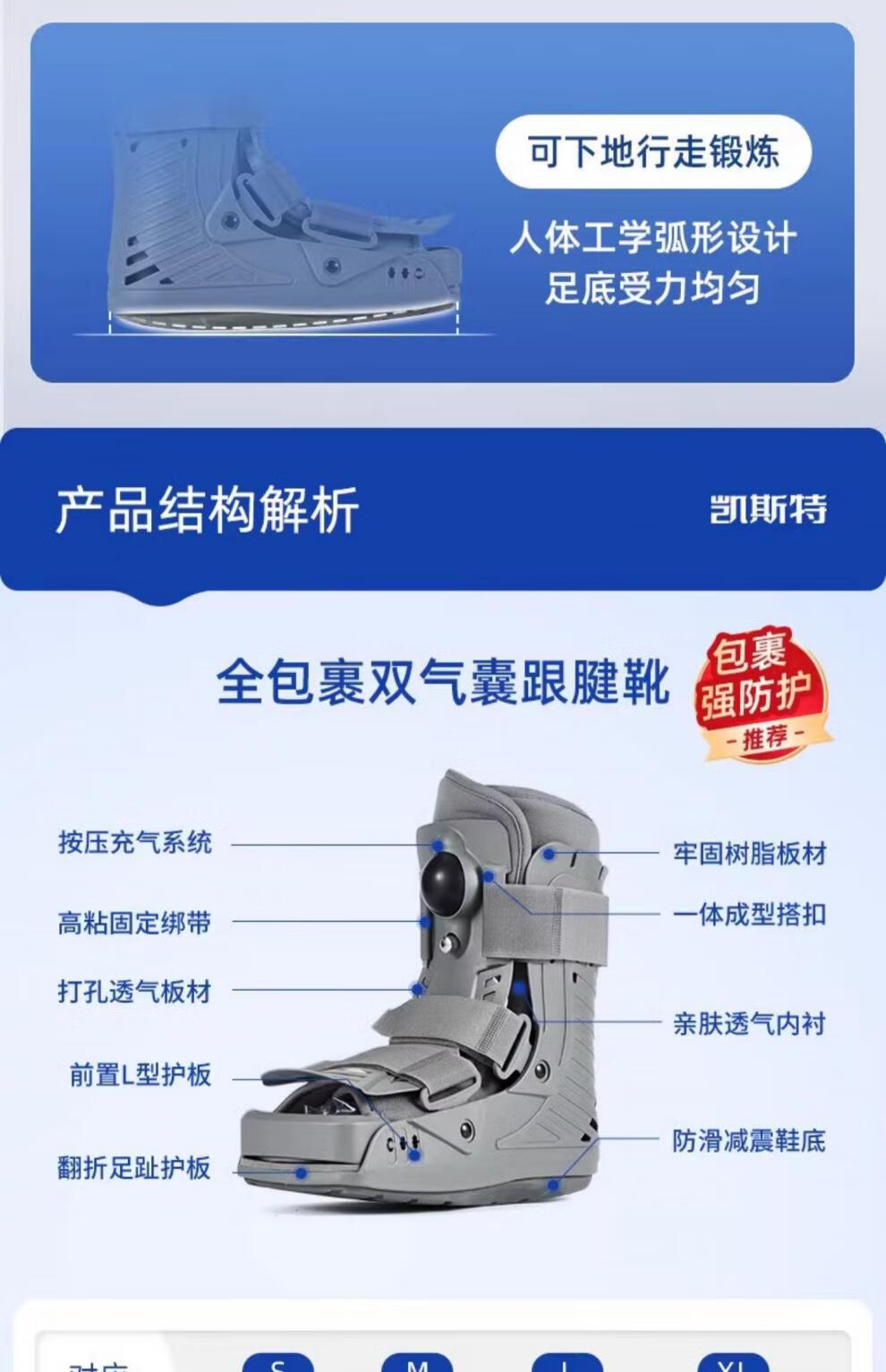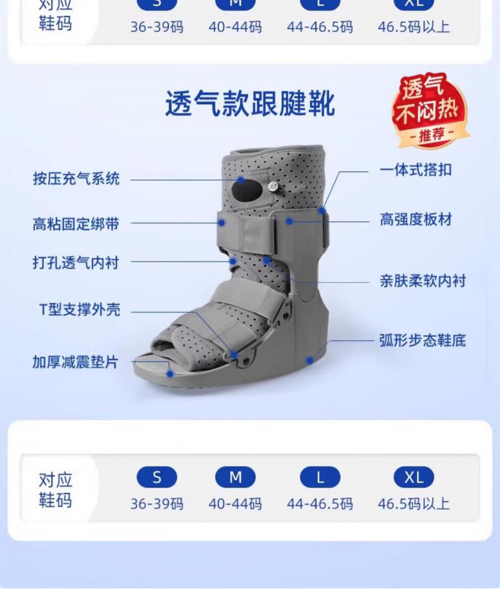 跟腱靴踝关节固定支具跟腱断裂术后康复鞋充气式助行鞋气囊鞋 轻便双气囊高款 S(建议36-39码)