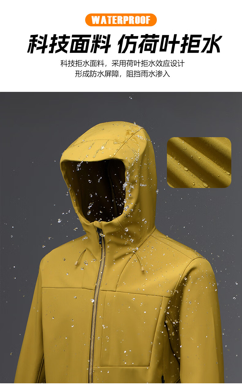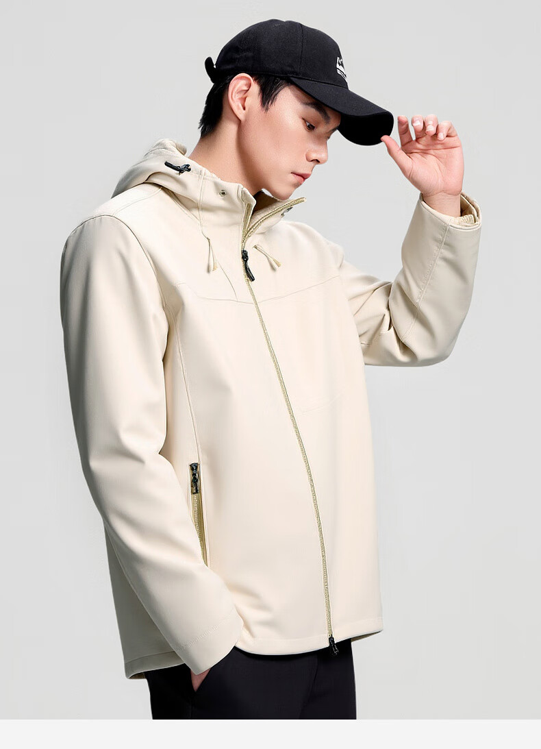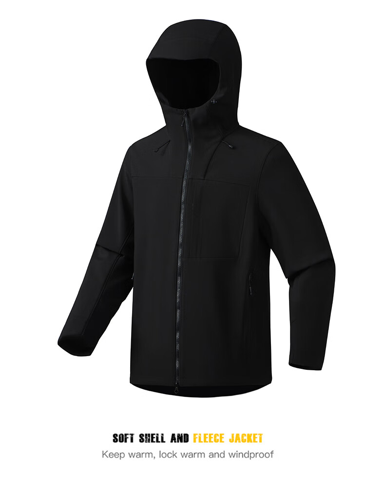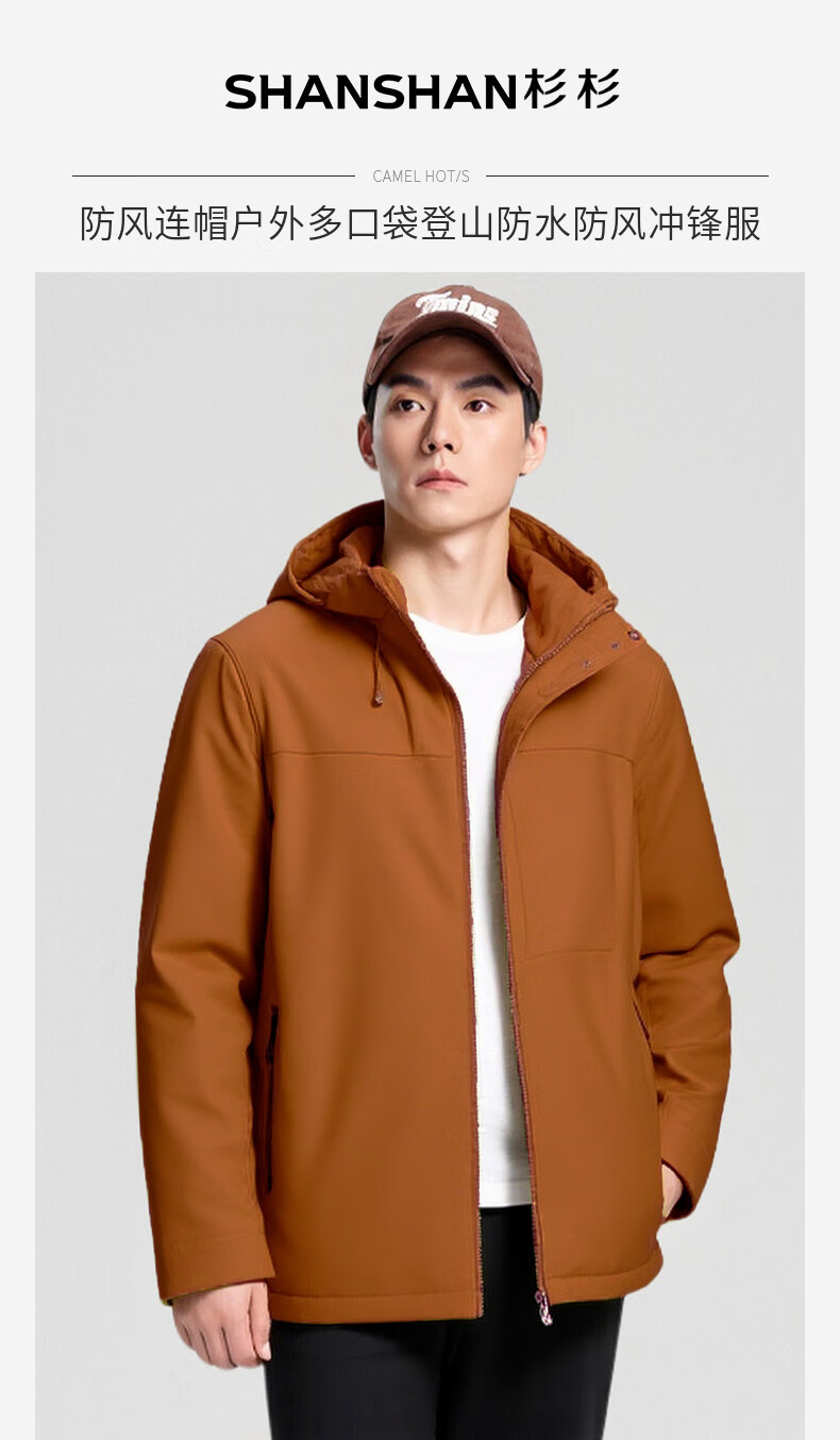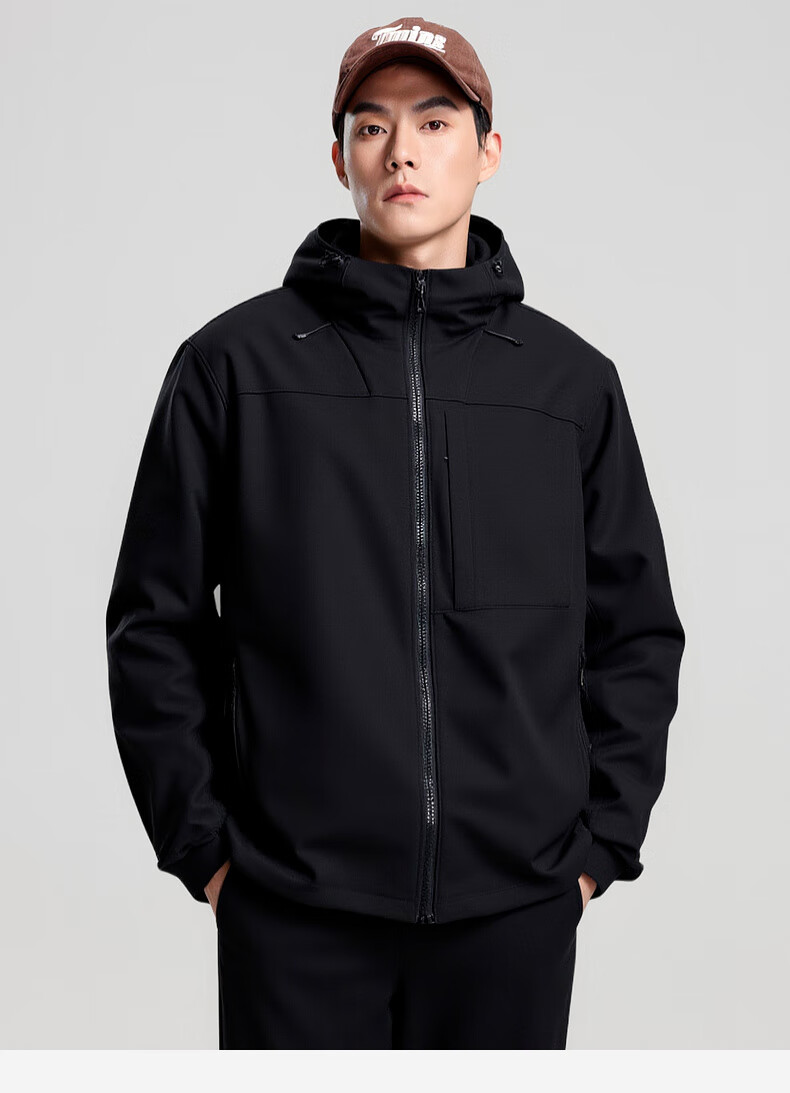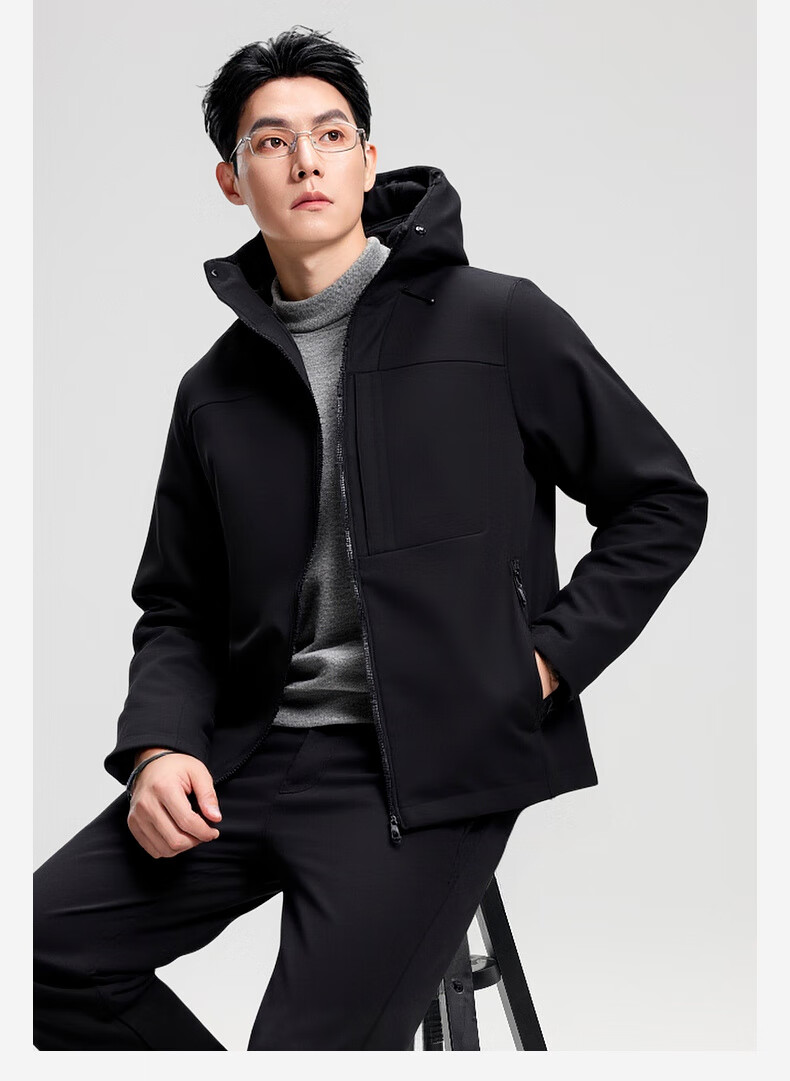 杉杉夹克男秋冬新款防风连帽外套男户外多口袋登山防水冲锋服上衣 黑色 2XL /185