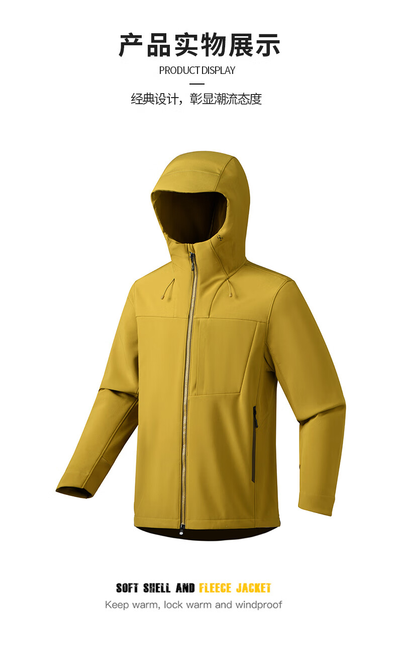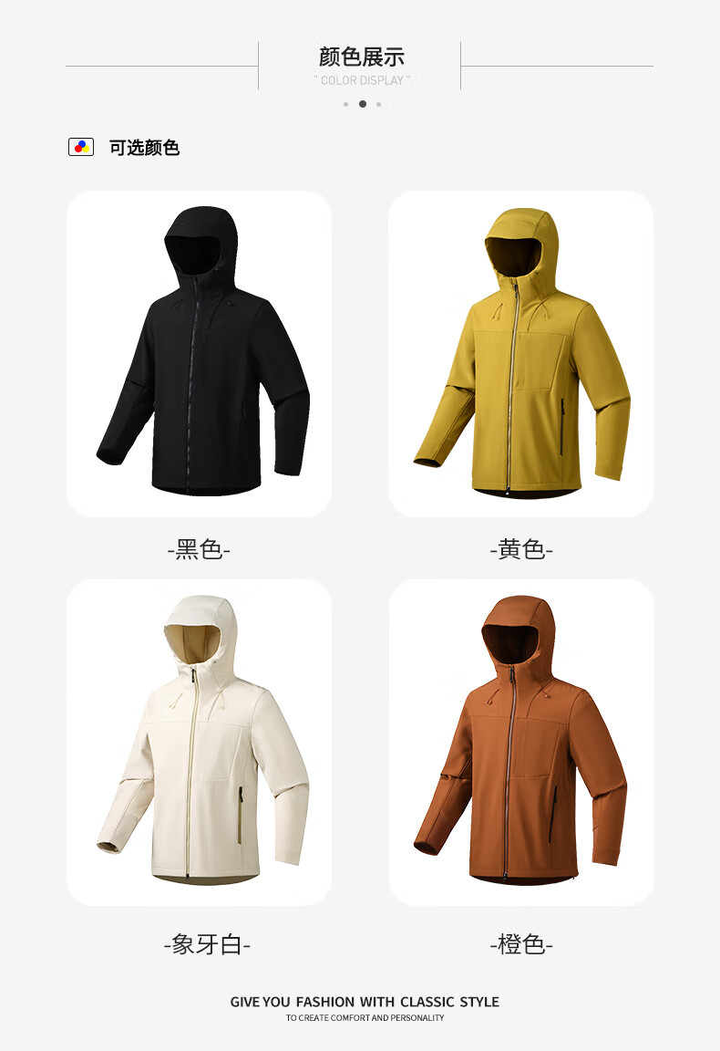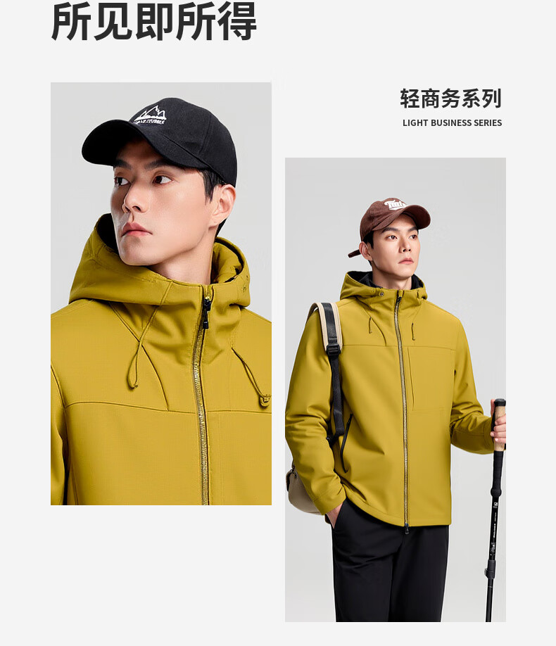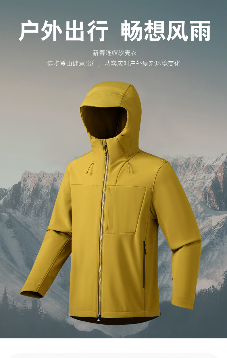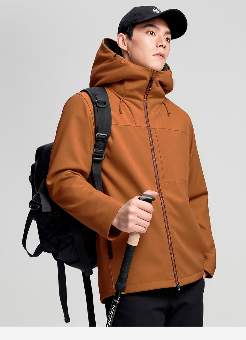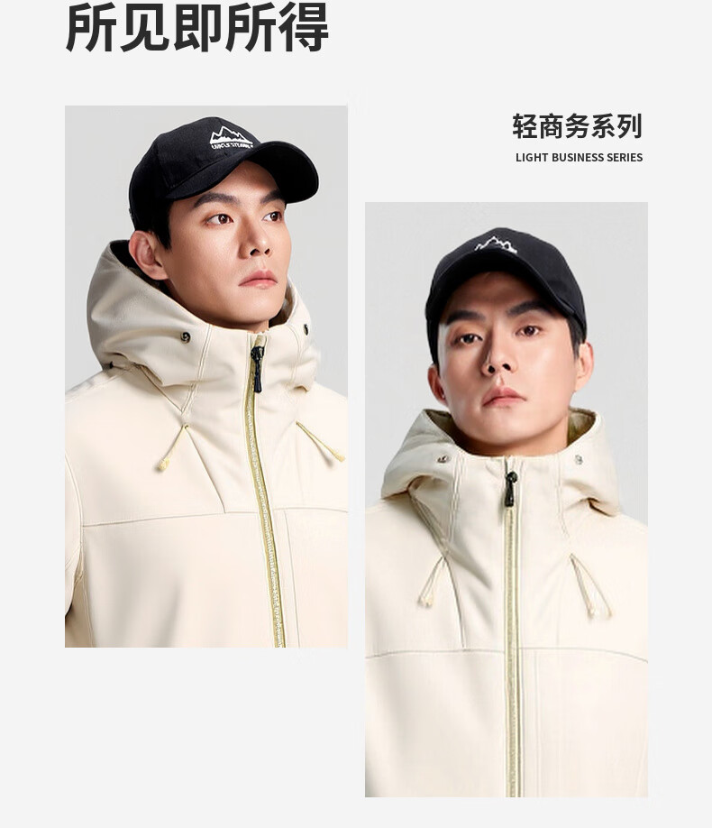 杉杉夹克男秋冬新款防风连帽外套男户外多口袋登山防水冲锋服上衣 黑色 2XL /185