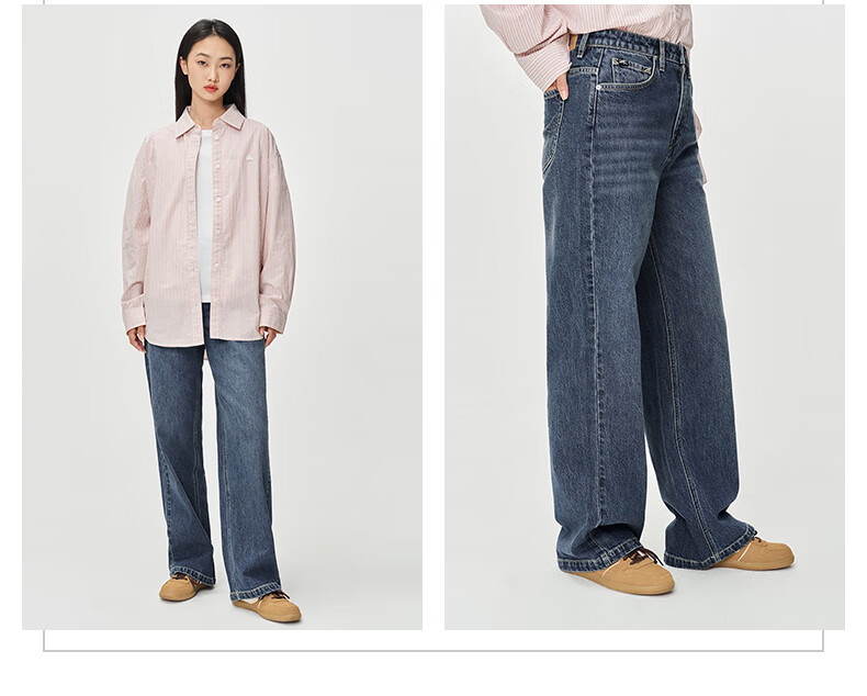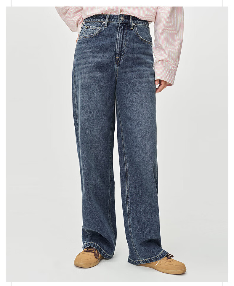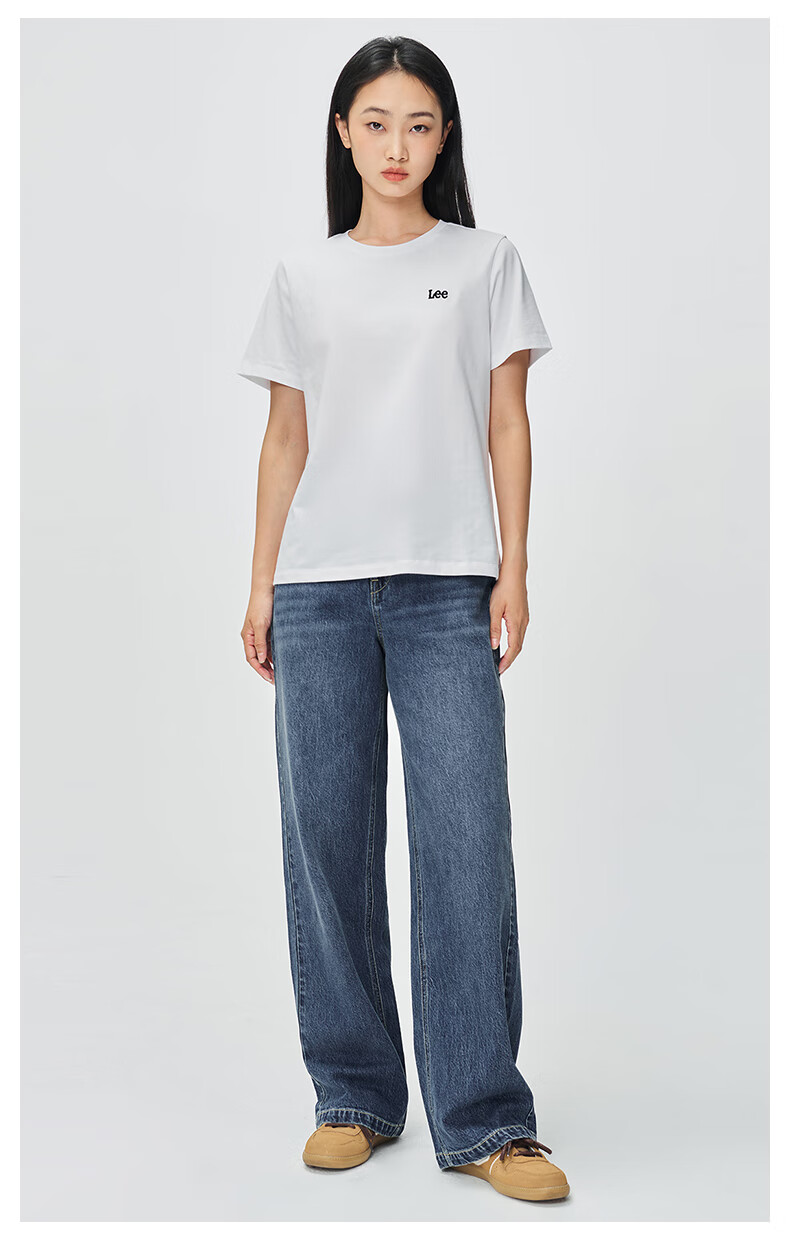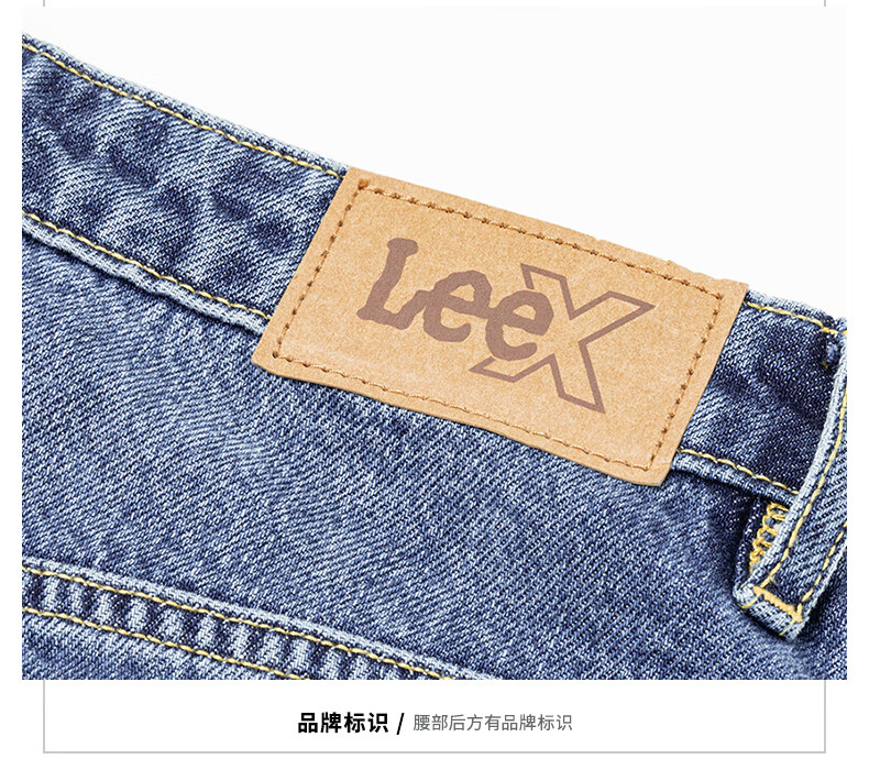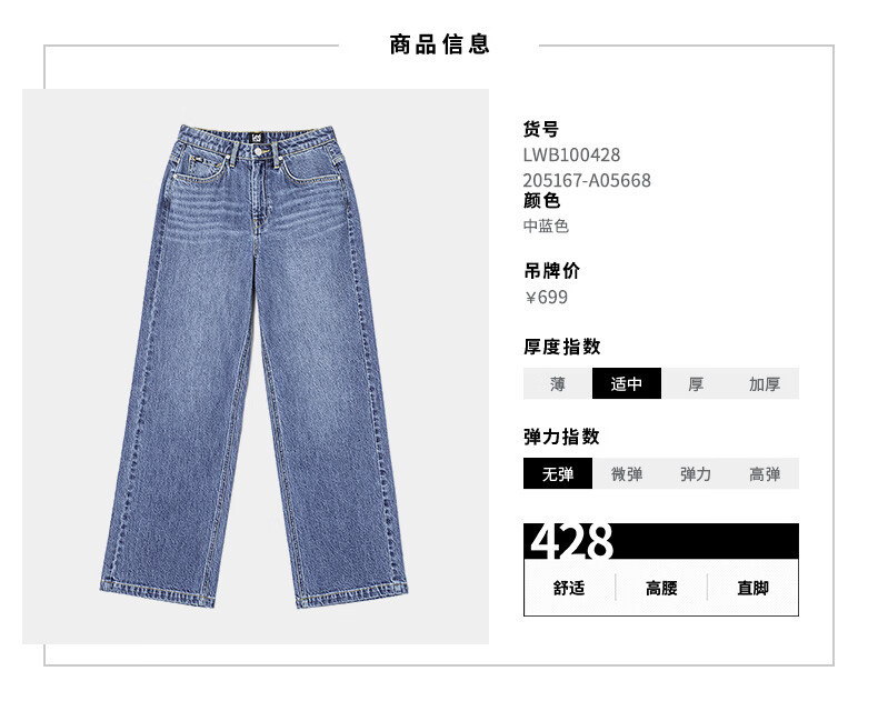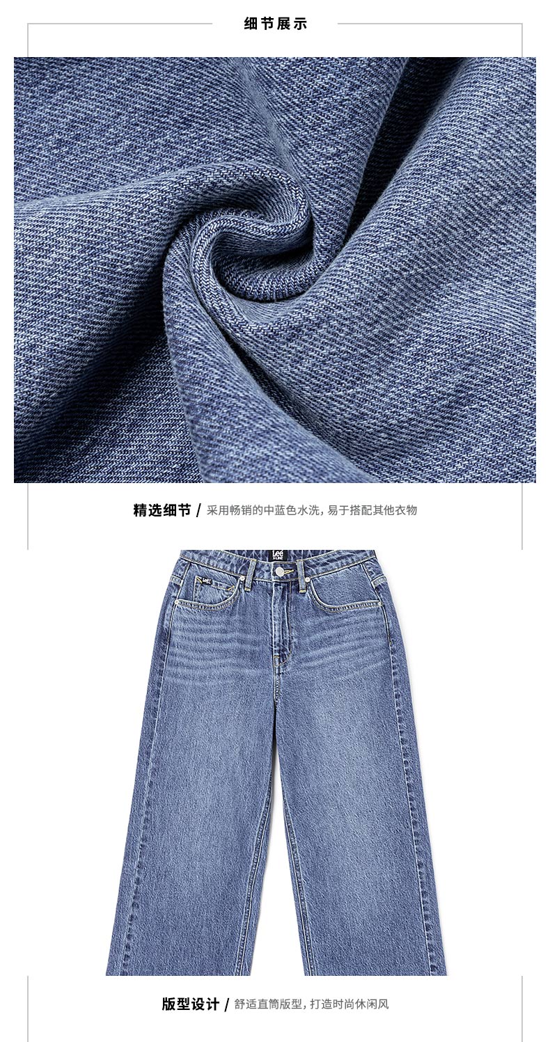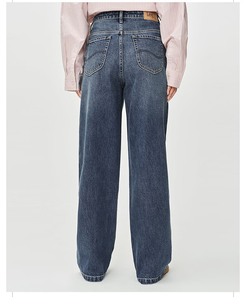 Lee中蓝色水洗428懒懒裤高腰女显瘦宽腿牛仔裤潮流