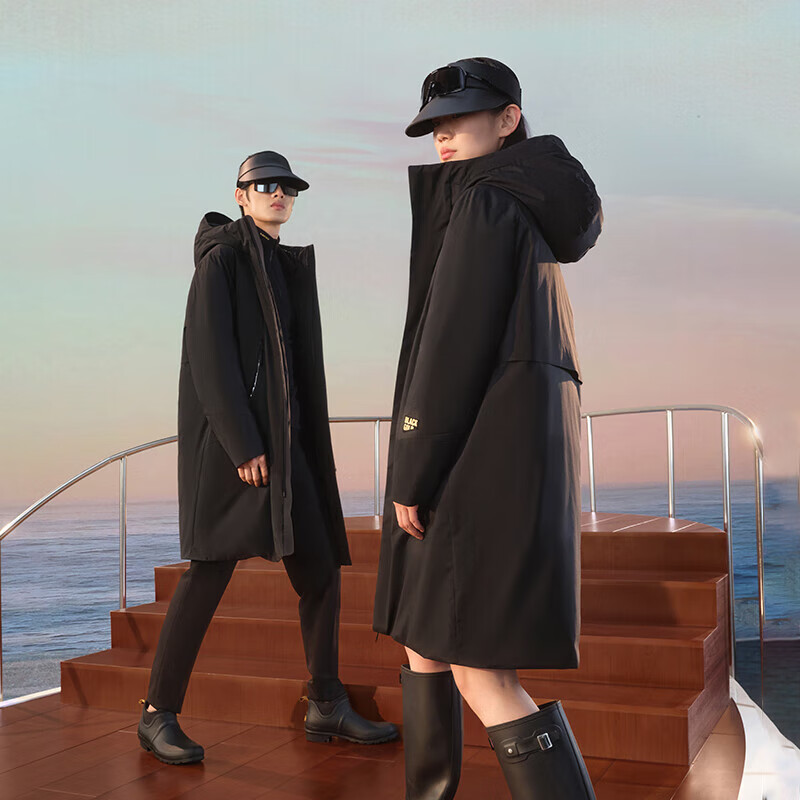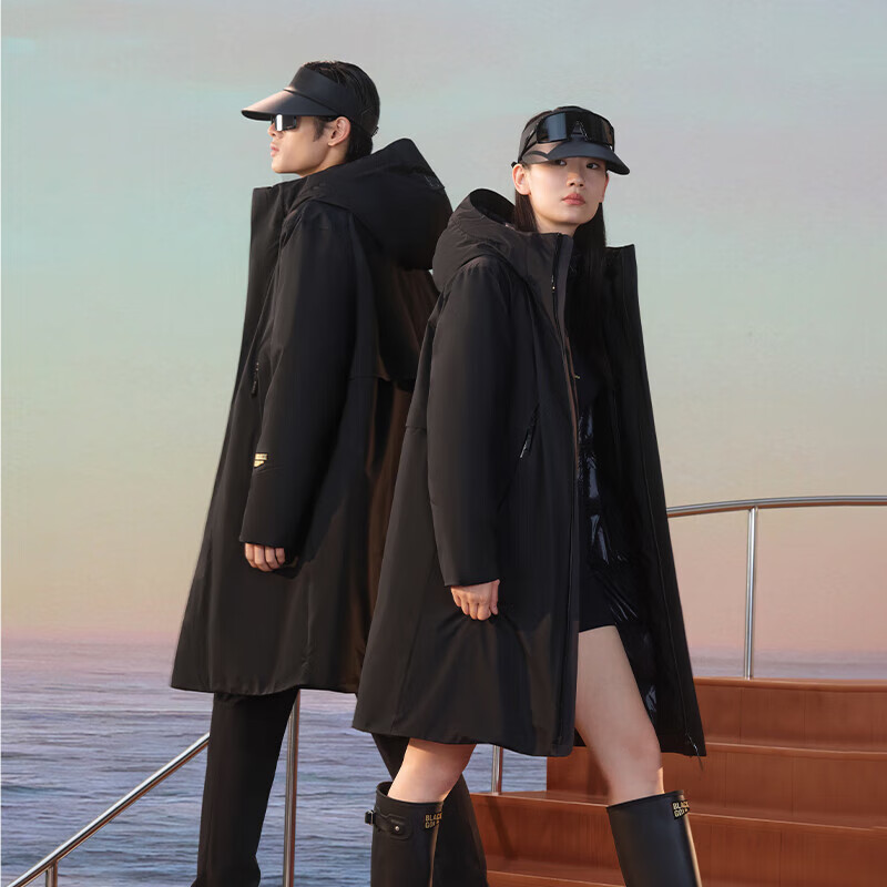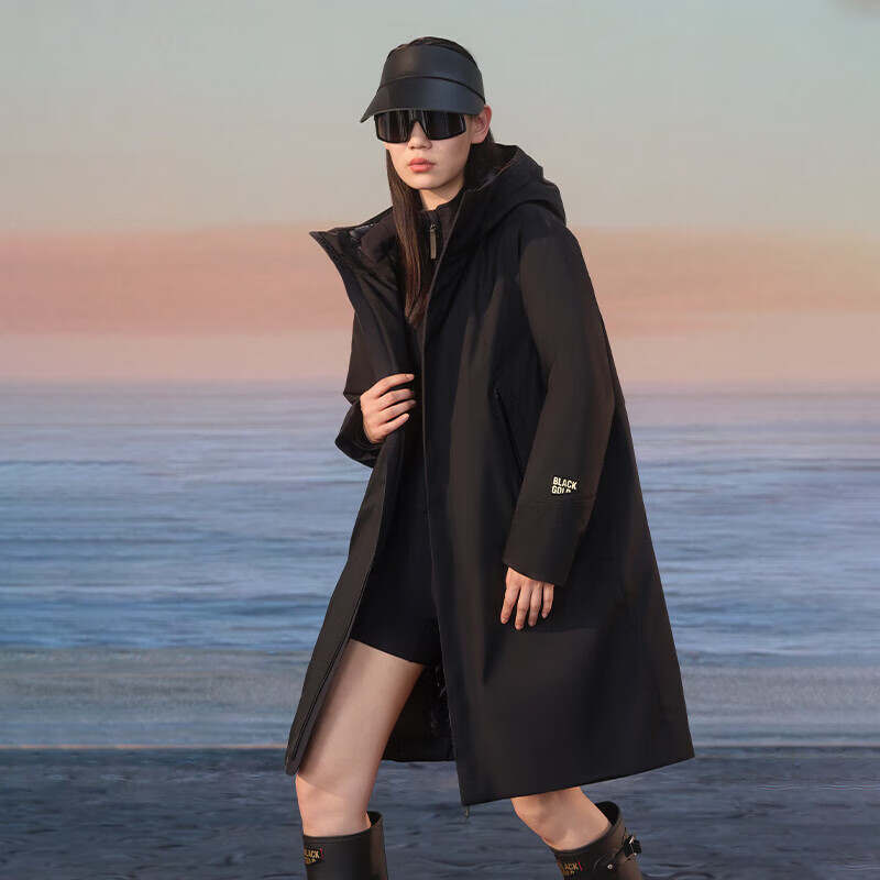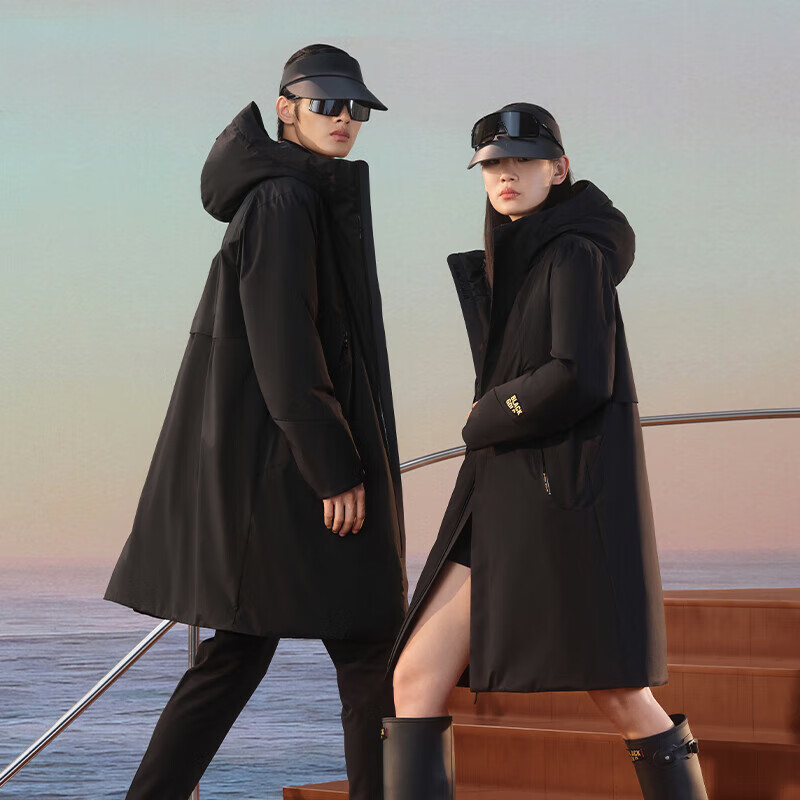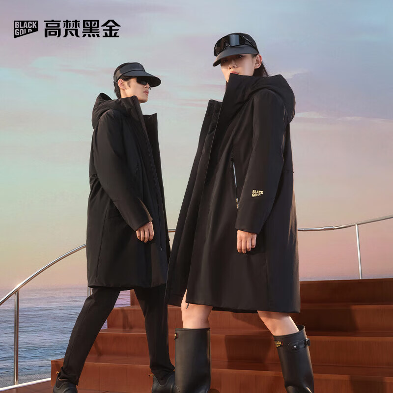 高梵风壳4.0七分奢华户外鹅绒服男女同款中长款秋冬羽绒服 黑色 M