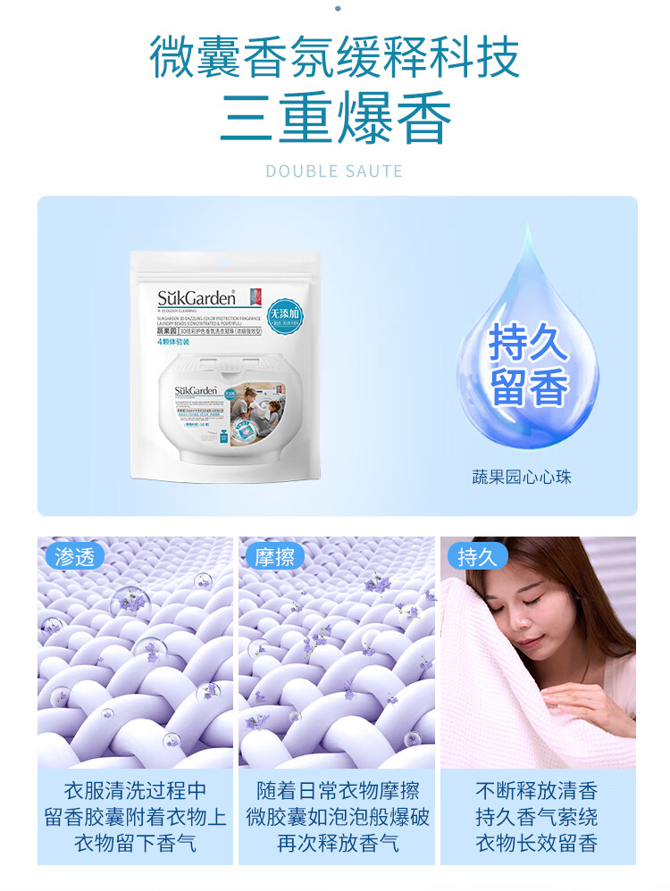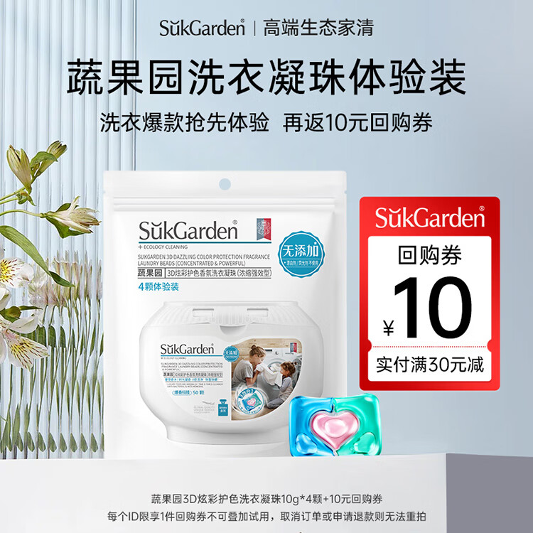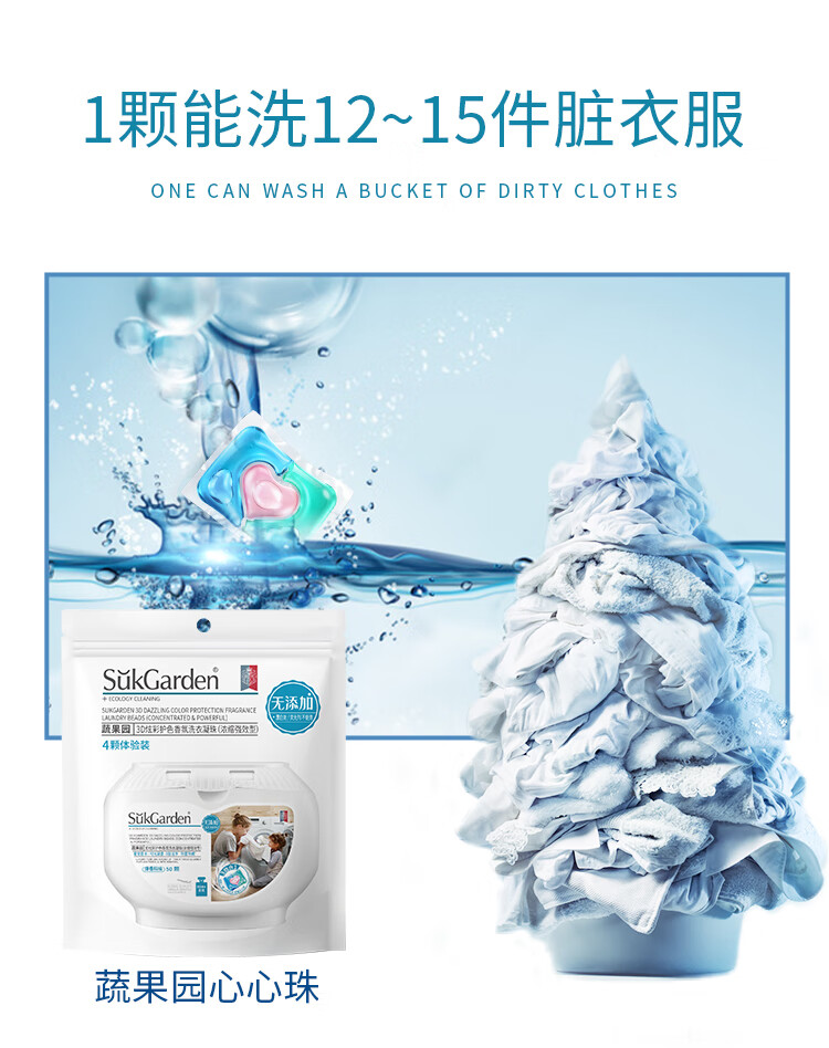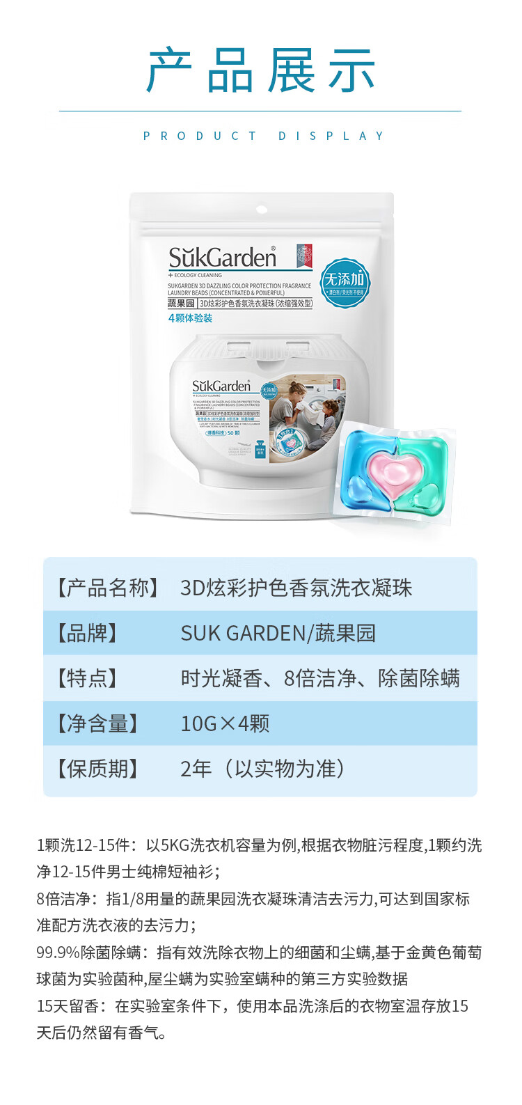 蔬果园3D炫彩香氛洗衣凝珠10g*4颗三腔浓缩洗衣液除菌除螨持久留香