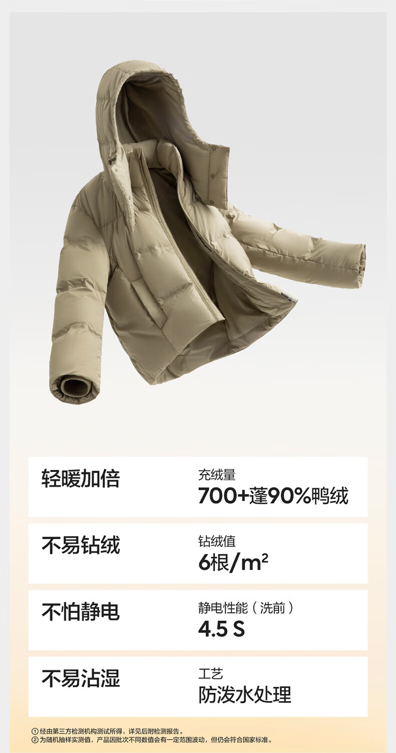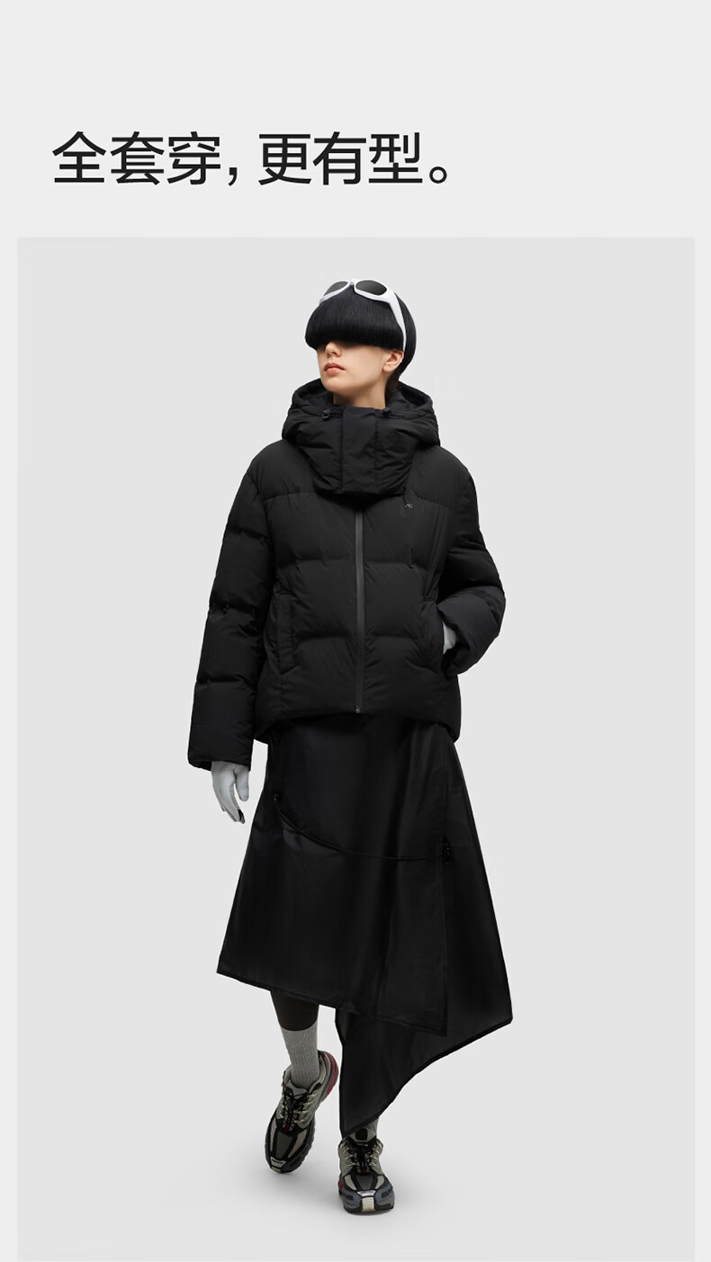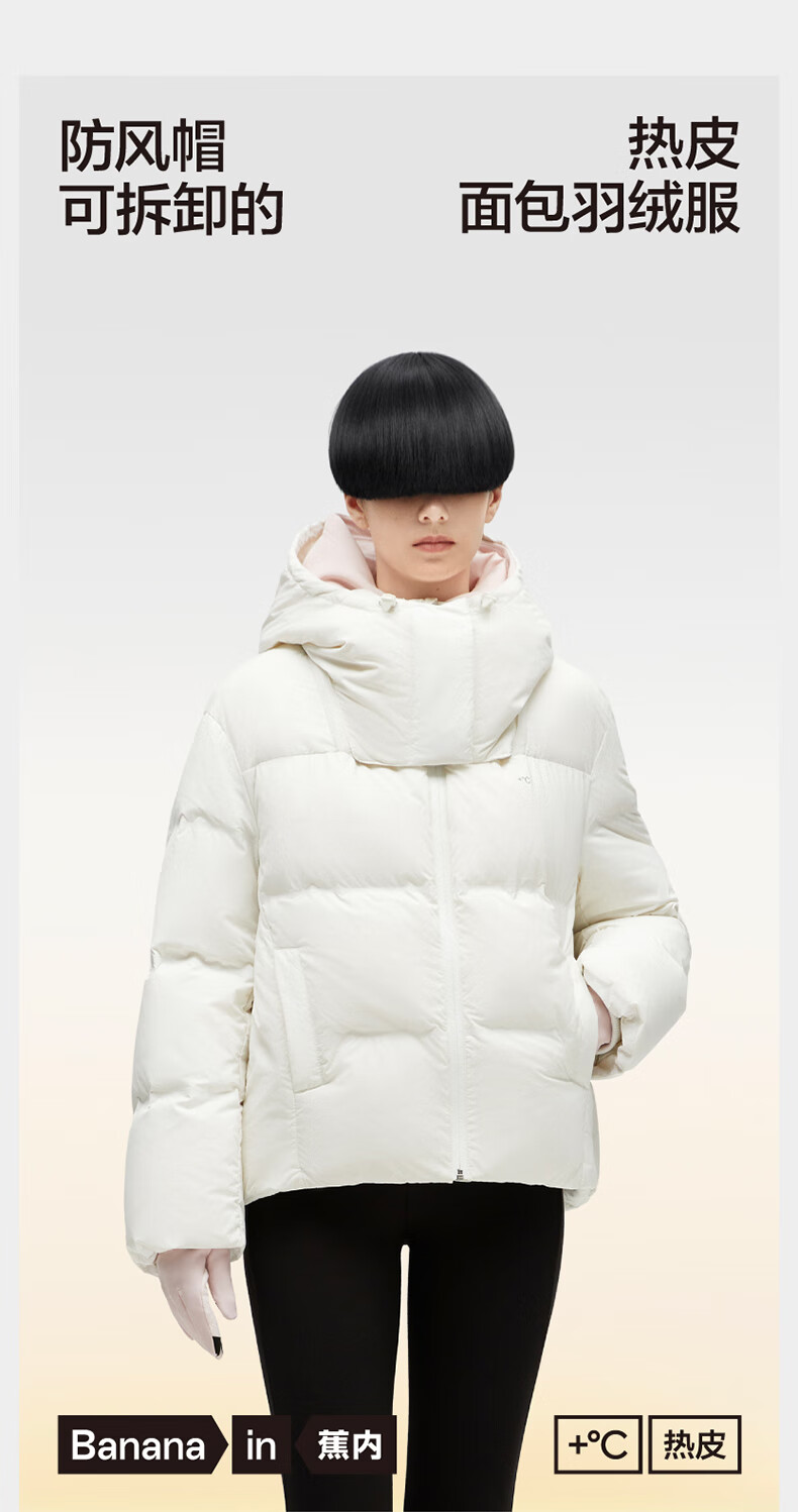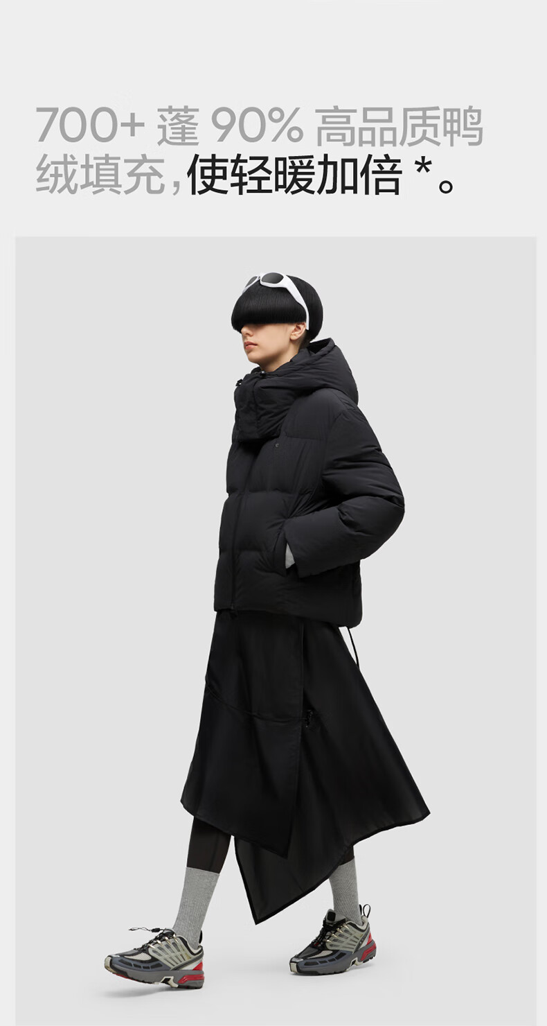 蕉内热皮5系女士羽绒服短款抗静电防泼水轻薄700+蓬松情侣外套秋冬季 黑色 L