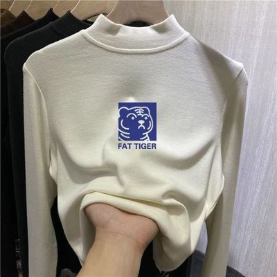 半高领打底衫女内搭秋冬新款德绒长袖宽松加绒加厚t恤保暖上衣ins