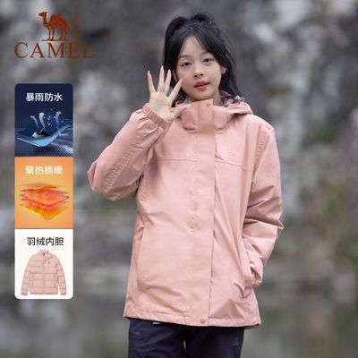 骆驼户外羽绒内胆冲锋衣女款三合一可拆卸年冬季新款防风外套