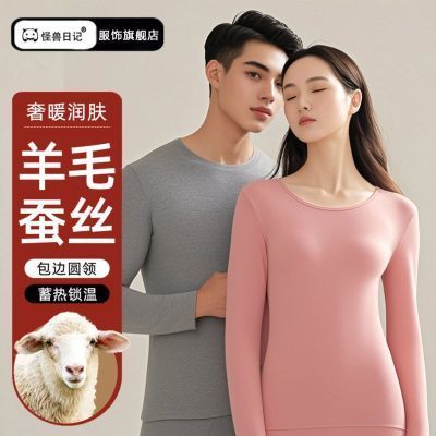 怪兽日记男女保暖套装内衣防寒发热羊毛打底秋衣秋裤加绒加厚冬季