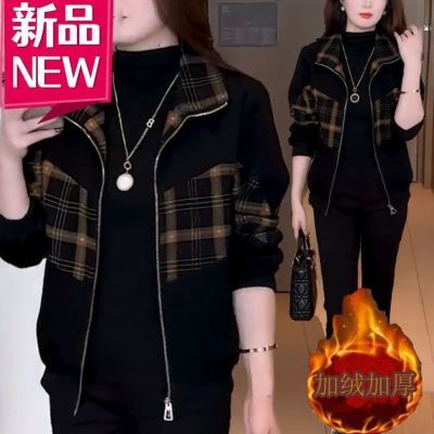 大码洋气圆领卫衣女2025秋冬季新款宽松显瘦假两件加绒长袖上衣女