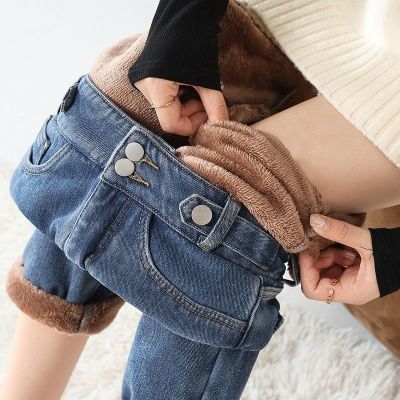 ZB高腰加绒哈伦小个子牛仔裤女加厚保暖潮流百搭显瘦九分老爹裤