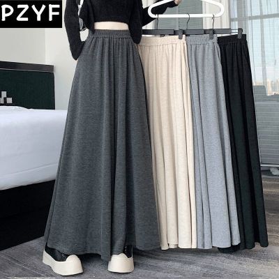 深灰色软糯米裙裤女秋季松紧高腰显瘦垂感阔腿裤百搭宽松休闲裤裙
