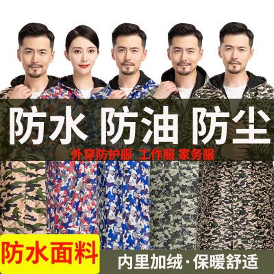 工作服加绒男女加厚罩衣防水防油冬季大褂带帽子耐脏抗冷长袖围裙
