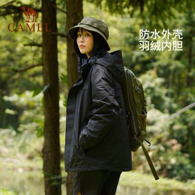 骆驼女装三合一纯色冲锋衣羽绒内胆两件套保暖防风防水出行外套