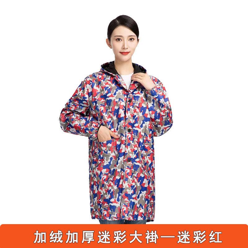 工作服加绒男女加厚罩衣防水防油冬季大褂带帽子耐脏抗冷长袖围裙