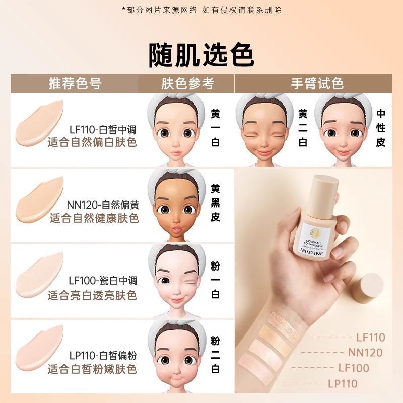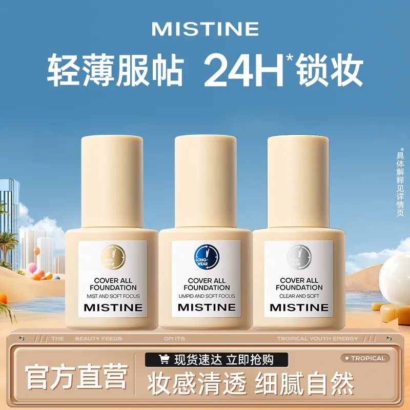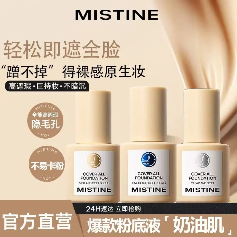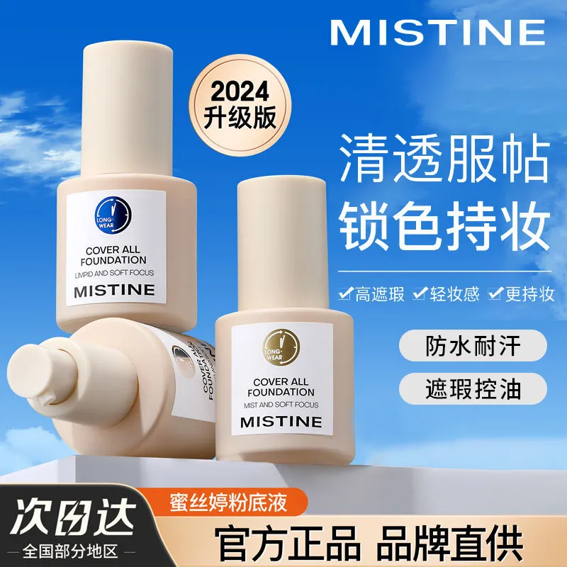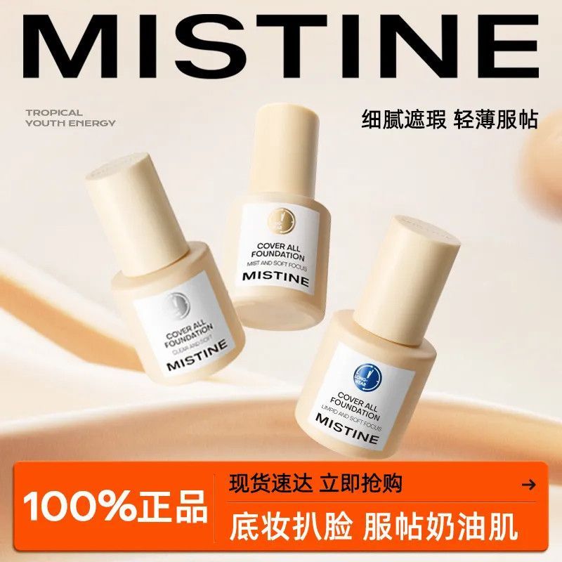 Mistine蜜丝婷小蓝盾粉底液持久混干油皮控油遮瑕滋润BB霜服帖女