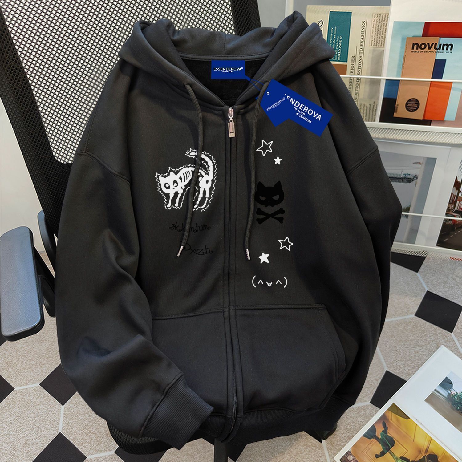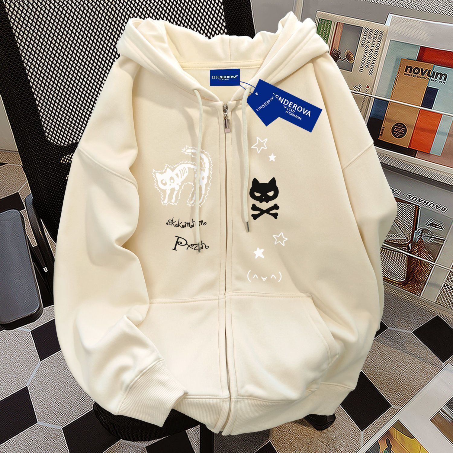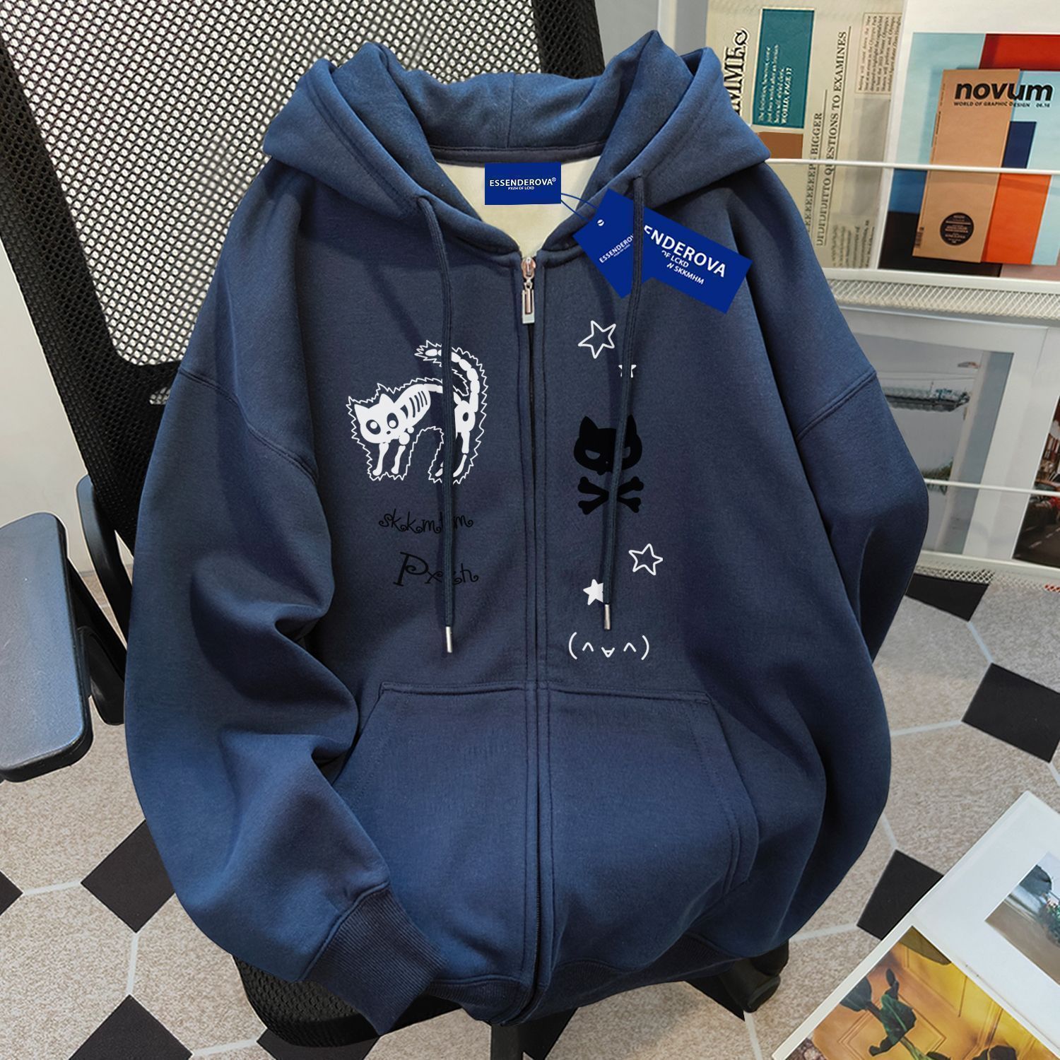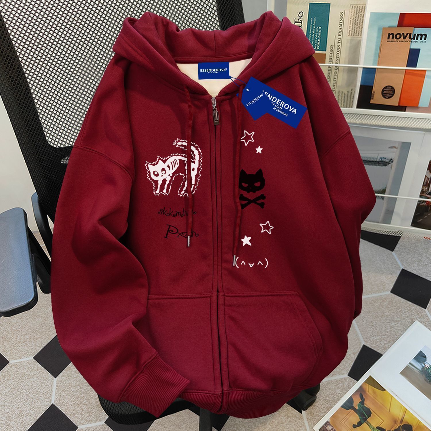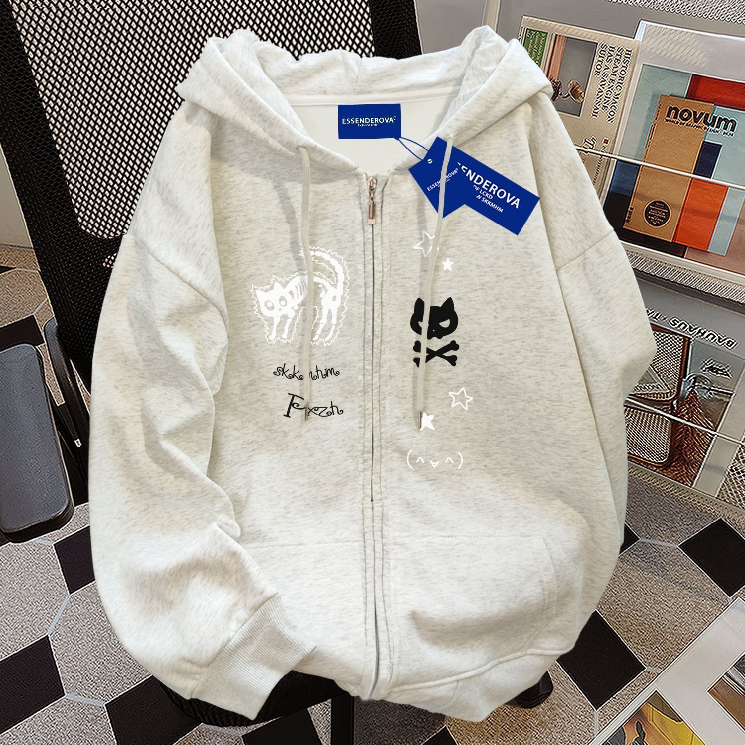 100_不起球连帽卫衣男女秋美式复古小众加绒百搭情侣拉链开衫外套