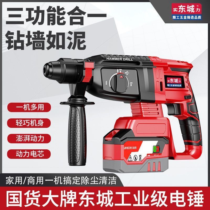东城款无刷充电式电锤电镐三用大功率混凝土锂电无线工业冲击电钻