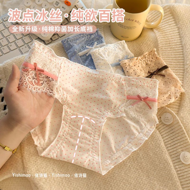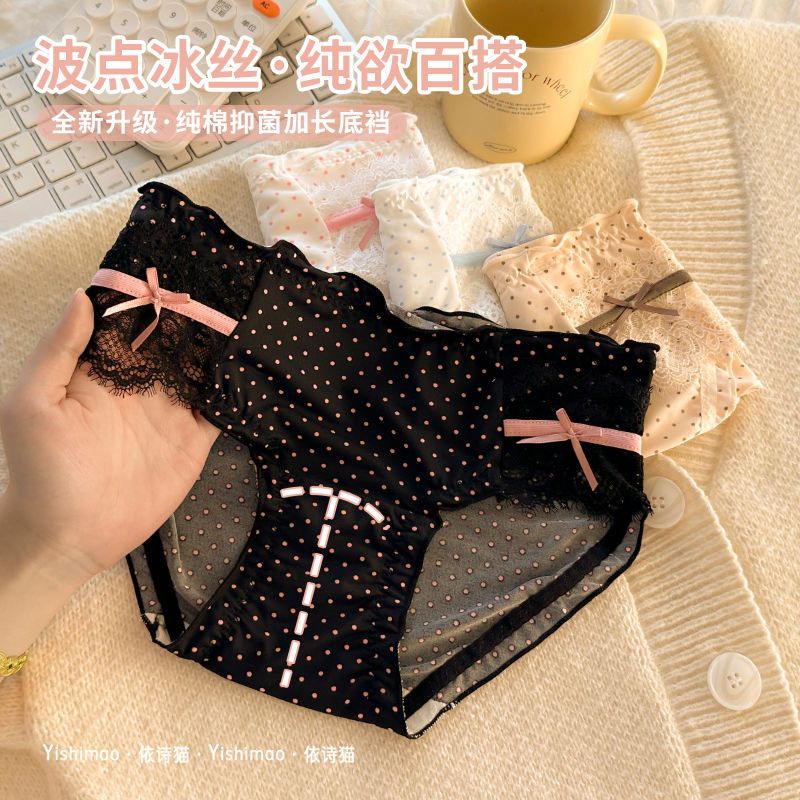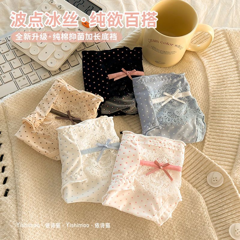 4条波点内裤女生2025新款加长棉裆中腰透气夏季薄款女士短裤头