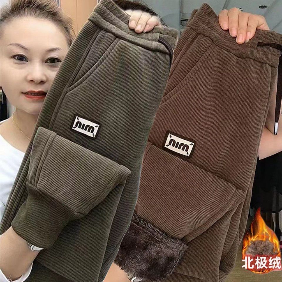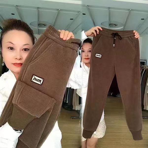 【年末清仓】秋冬新款加绒加厚灯芯绒外穿保暖羊羔绒束脚哈伦长裤