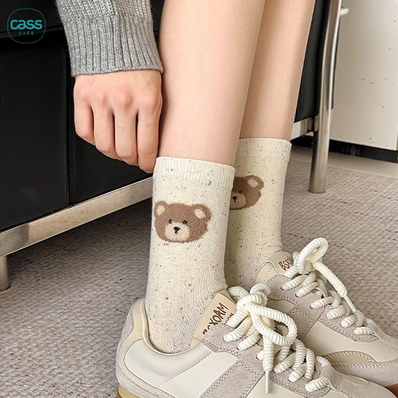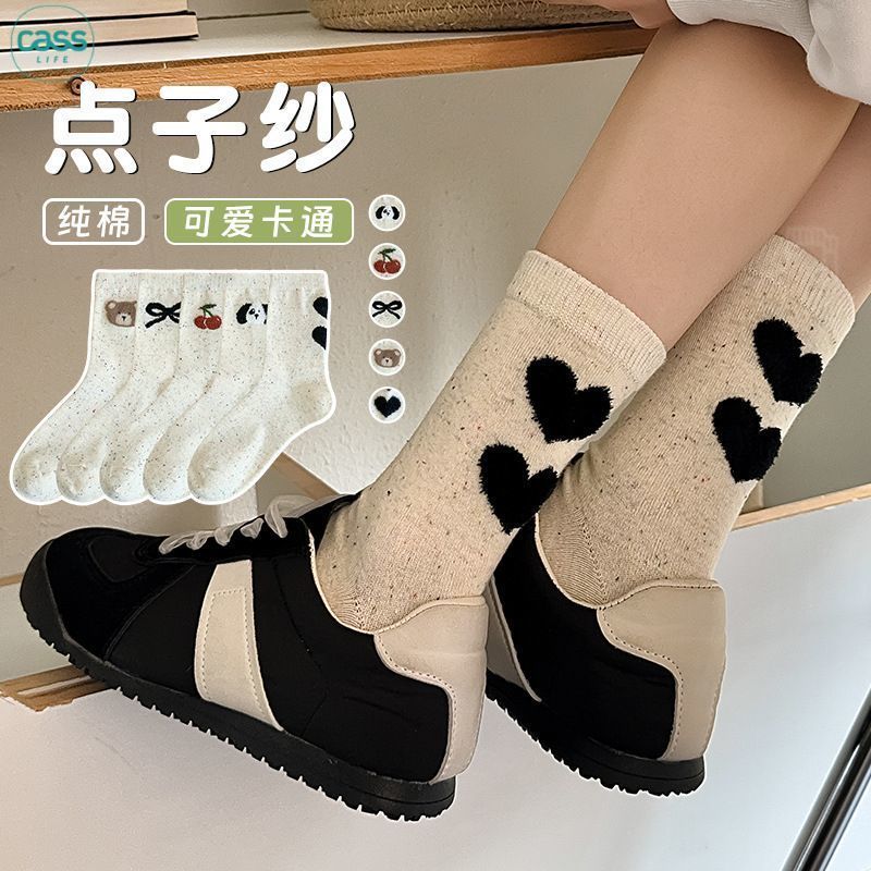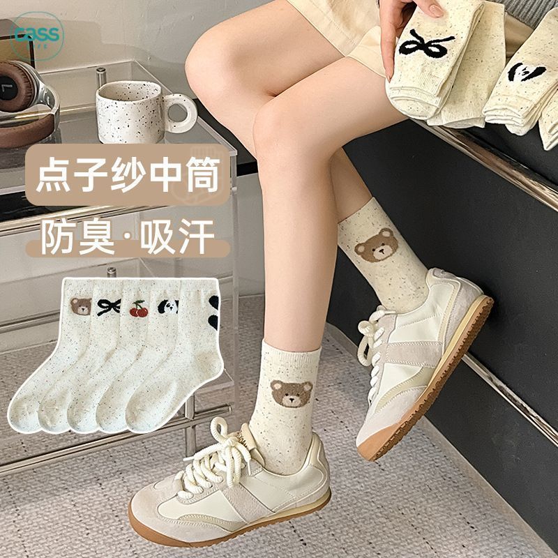 佳适(新店冲量16双)点子纱小熊袜子中筒袜ins潮日系小狗堆堆袜