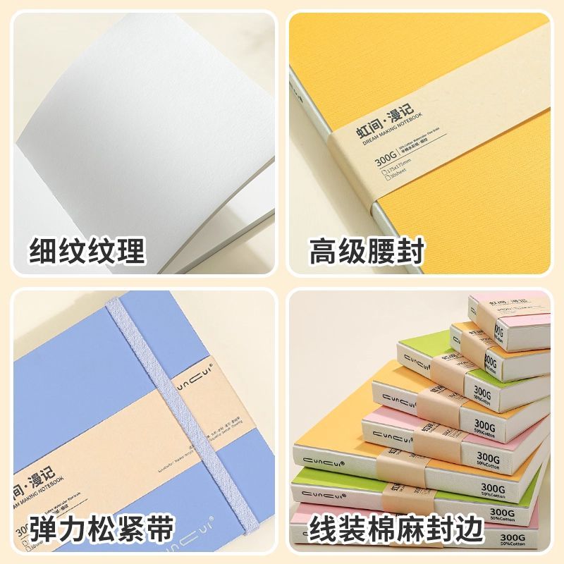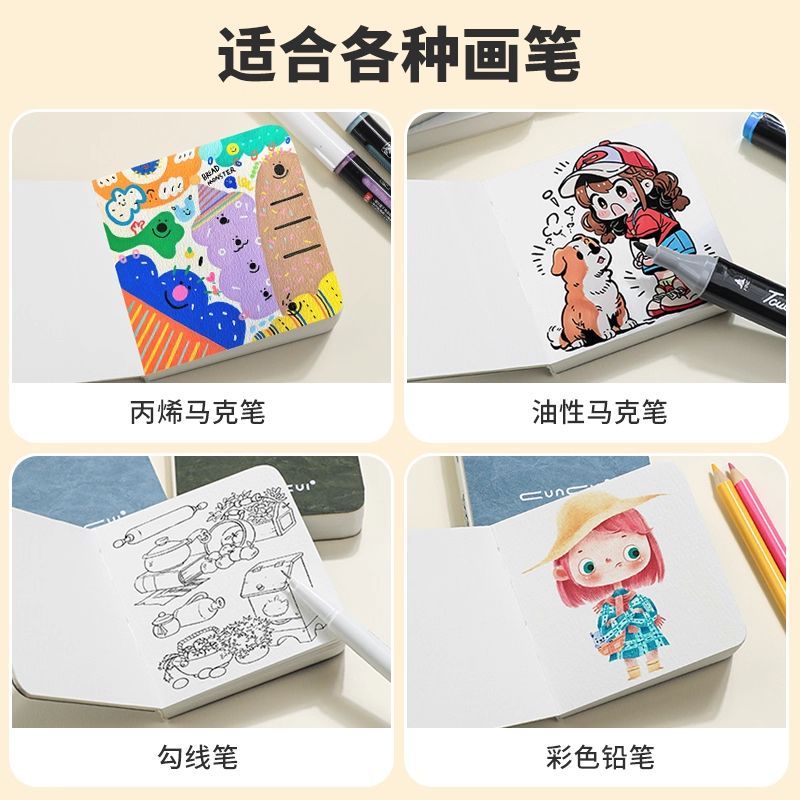 丙烯画本马克笔专用本迷你摸鱼口袋图画水彩本正方形300g半棉细纹