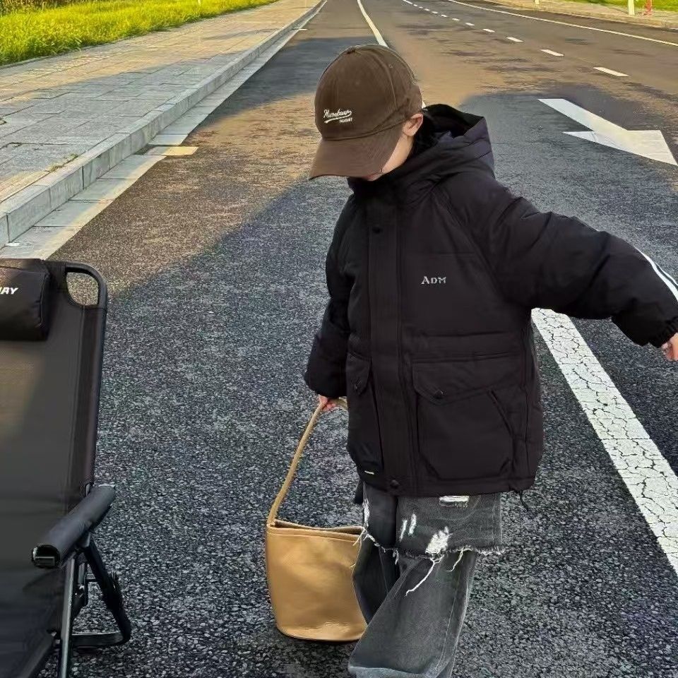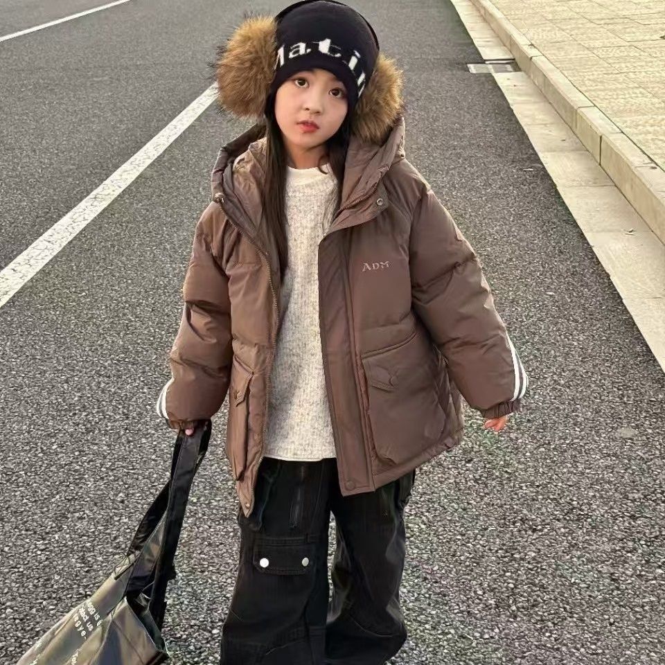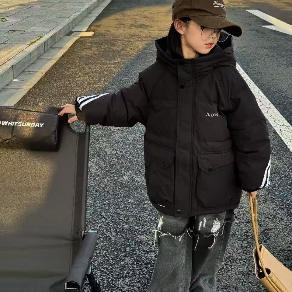 【BRAND】男女同款中大童鸭绒冬季纯色连帽宽松韩版反季羽绒棉服