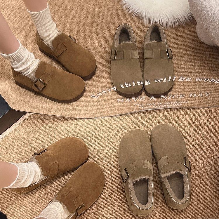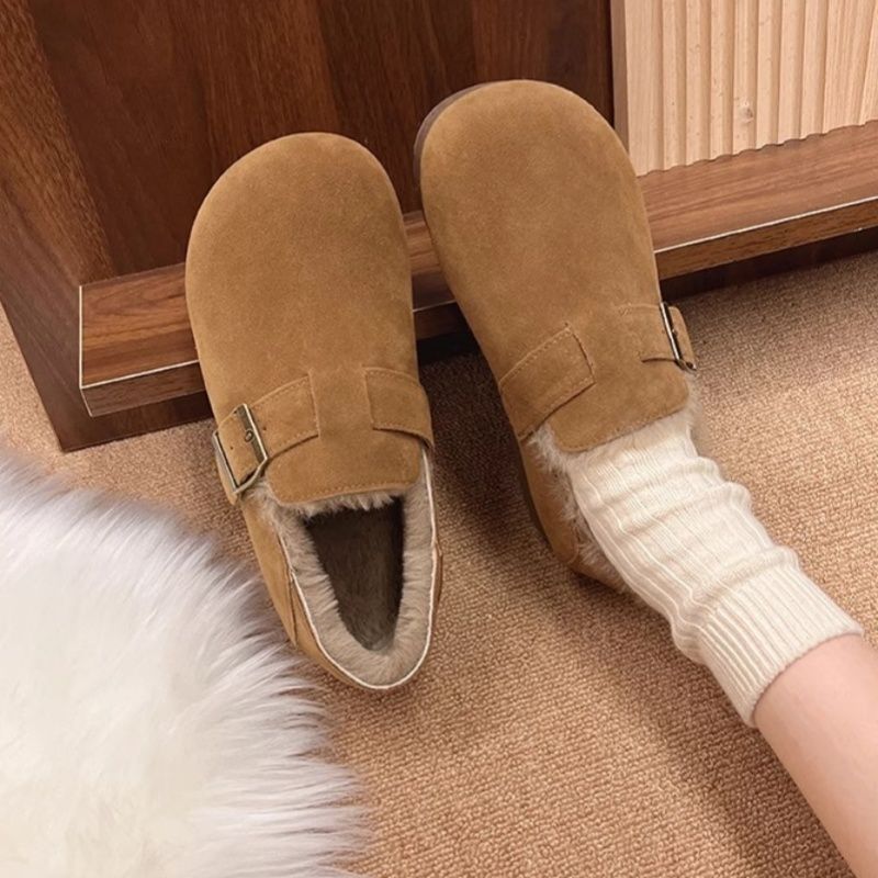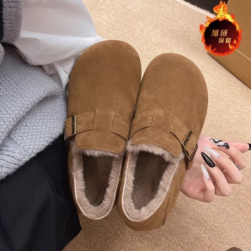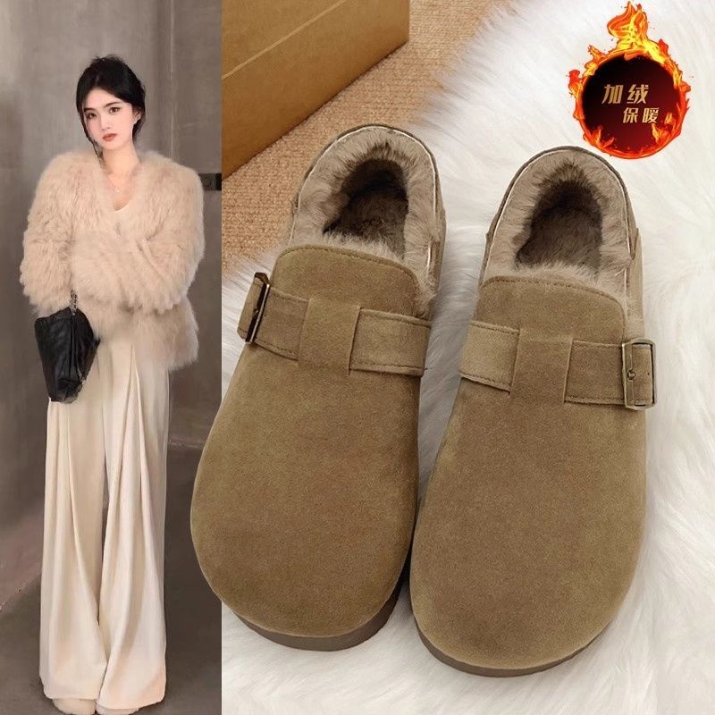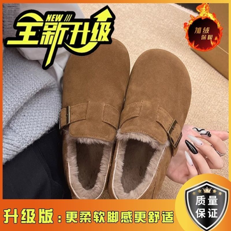 加绒全包复古勃肯鞋女冬2025新款一脚蹬棉鞋毛毛鞋加厚保暖雪地靴